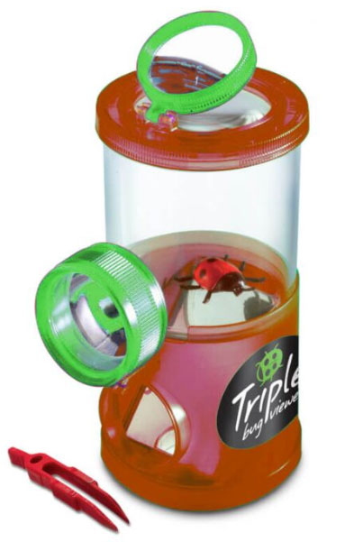 Банка для насекомых Navir с возможностью обзора с трех сторон понравится каждому юному натуралисту, увлеченному изучением живой природы. Оснащенный лупами и зеркалом контейнер позволяет рассматривать помещенные в него объекты сверху на увеличении 2 и 4 крата, а с нижней и боковой стороны – на увеличении 3 крата. При исследовании объектов живой природы можно не беспокоиться об их безопасности: банка оснащена отверстиями для воздуха, а в комплект поставки включен пластиковый пинцет для аккуратного переноса насекомых. Измерительная шкала поможет узнать размеры изучаемых объектов. Прочный корпус банки сделан из ABS-пластика, оптика – из гигиеничного оргстекла.