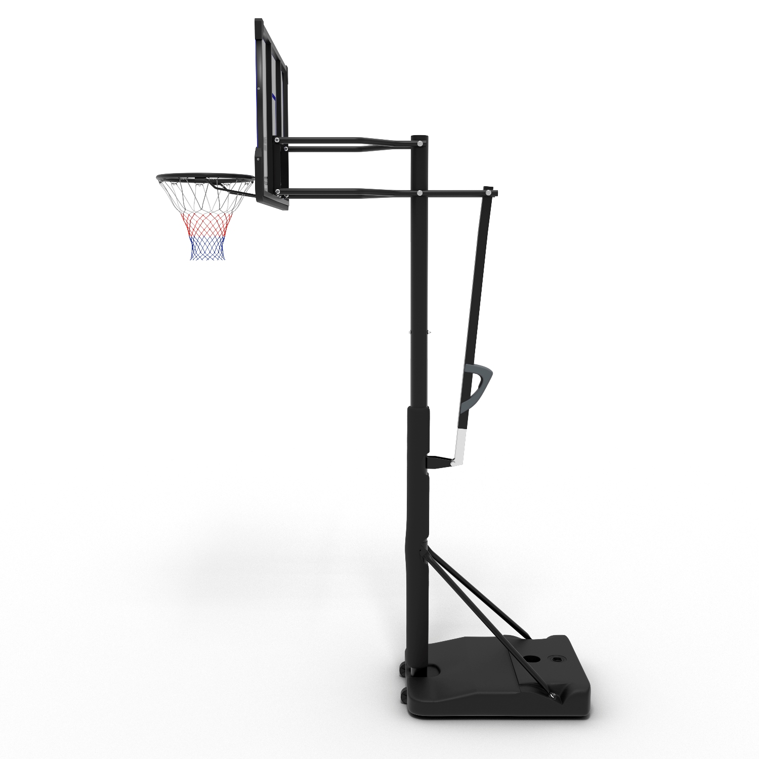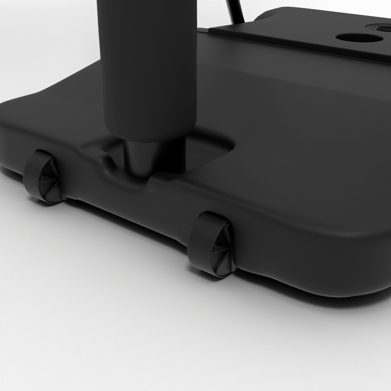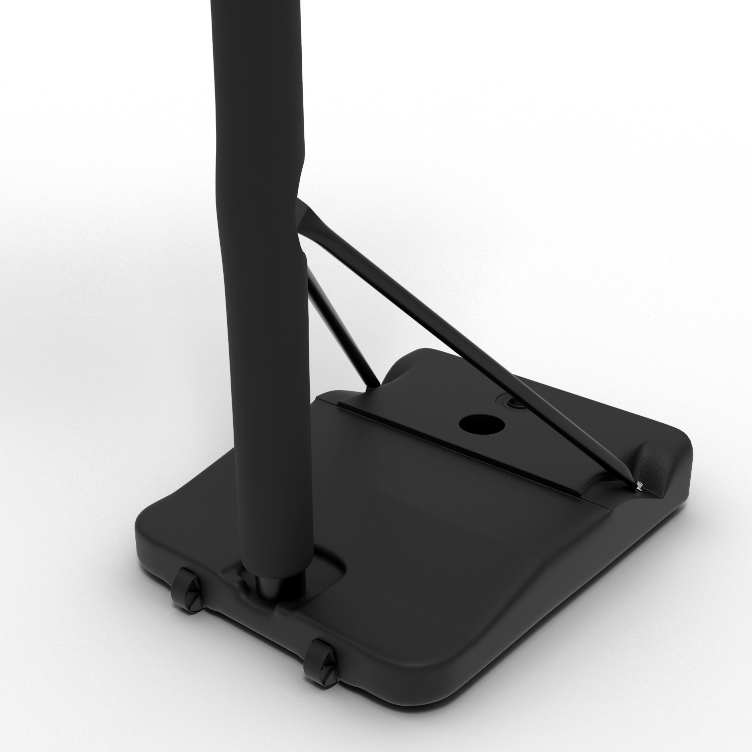 В основание стойки необходимо залить воду или засыпать песок. Для перемещения стойки по площадке в основании предусмотрены ролики.