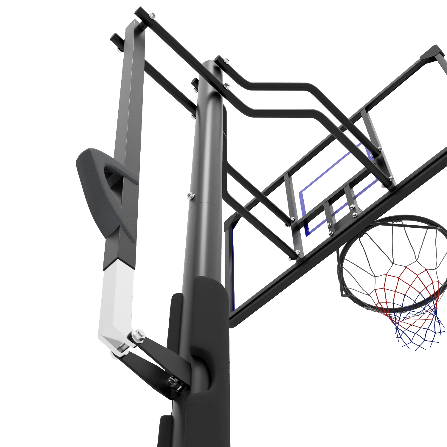 Высота щита регулируется в диапазоне от 235 до 305 см (расстояние от земли до кольца). Толщина щита 3 см с рамкой, диаметр стойки 7 см.