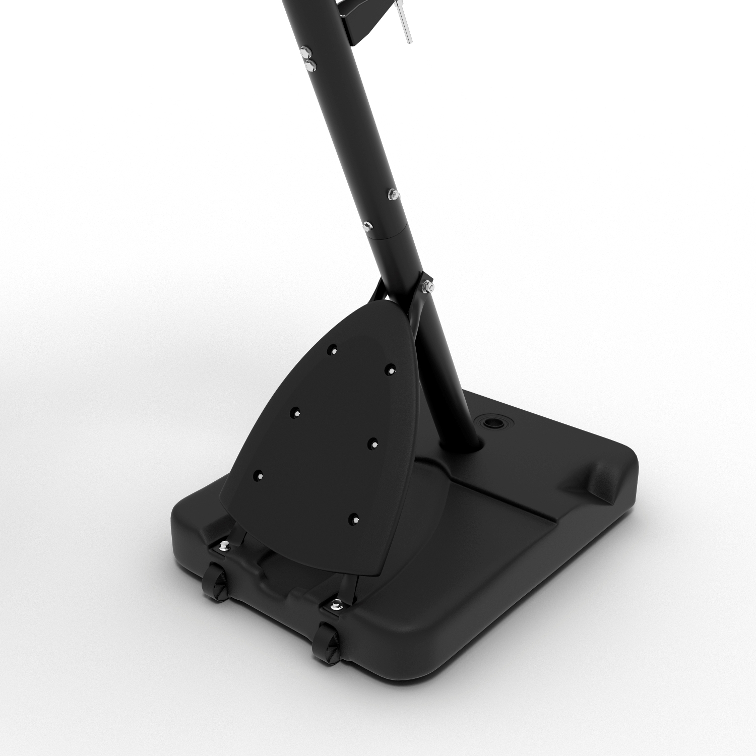 В основание стойки необходимо залить воду или засыпать песок. Для перемещения стойки по площадке в основании предусмотрены ролики.