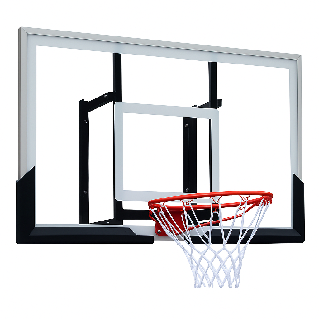Щит изготовлен из прочного поликарбоната, который отличается высокой устойчивостью к ударам и погодным условиям. Он не мутнеет, не выцветает и сохраняет аккуратный внешний вид даже при активной эксплуатации. Толщина конструкции 2 мм, что обеспечивает надежность и долговечность, а качественная сборка гарантирует устойчивость при бросках и отскоках мяча.