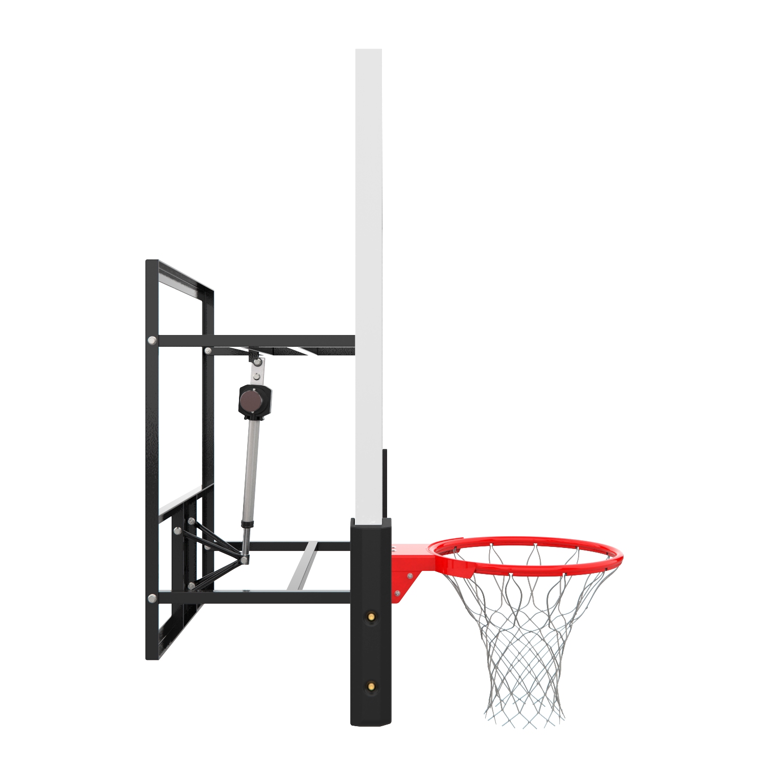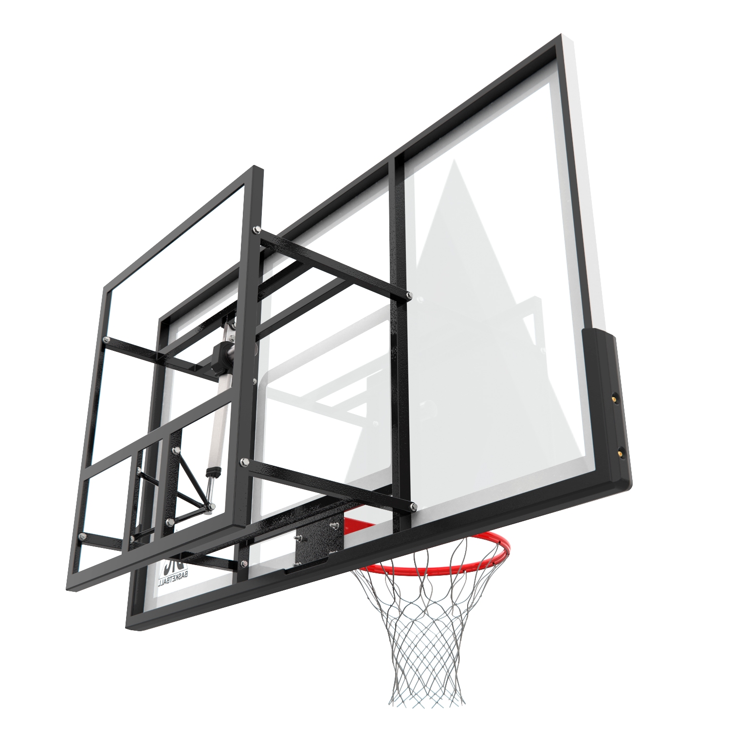 Щит выполнен из высококачественного поликарбоната толщиной 4 мм. Размер щита стандартный – 180х107 см, высота регулируется в диапазоне 40 см. В комплекте крепление для стены, кольцо с сеткой и амортизатором и пульт управления. Длина шнура питания составляет 65 см. Это не просто тренировочное оборудование, это кольцо для игр профессиональных команд. Переходите в высшую лигу вместе с DFC BOARD72P!