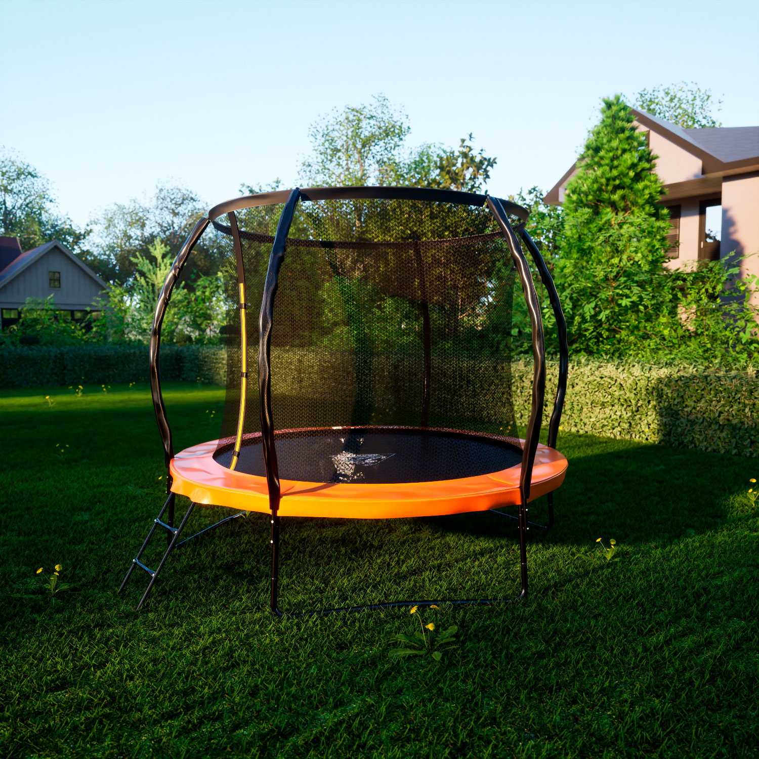Пружины выполнены из высококачественной стали, которые имеют повышенную защиту от износа и растягивания, тем самым позволяя продлить срок службы батута.