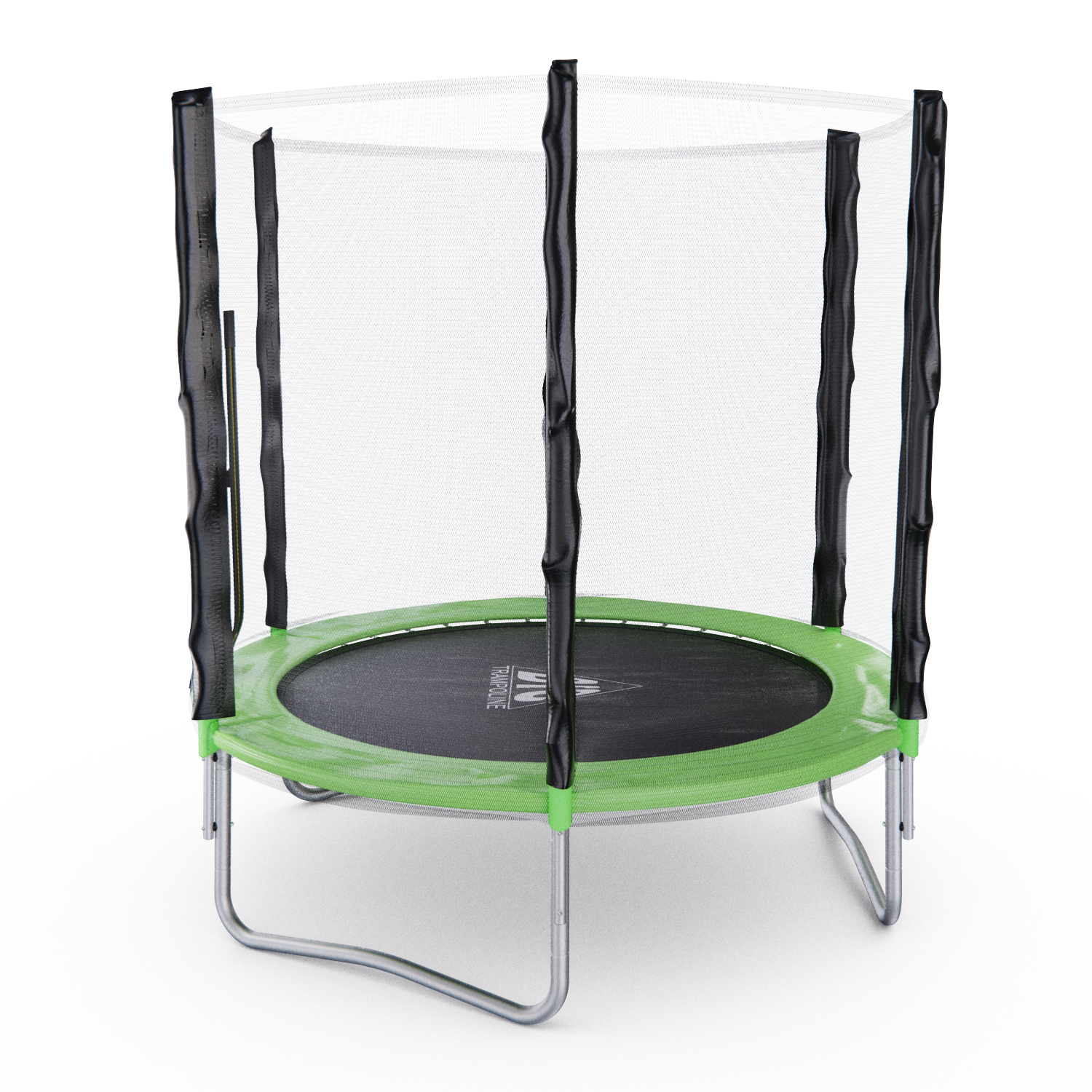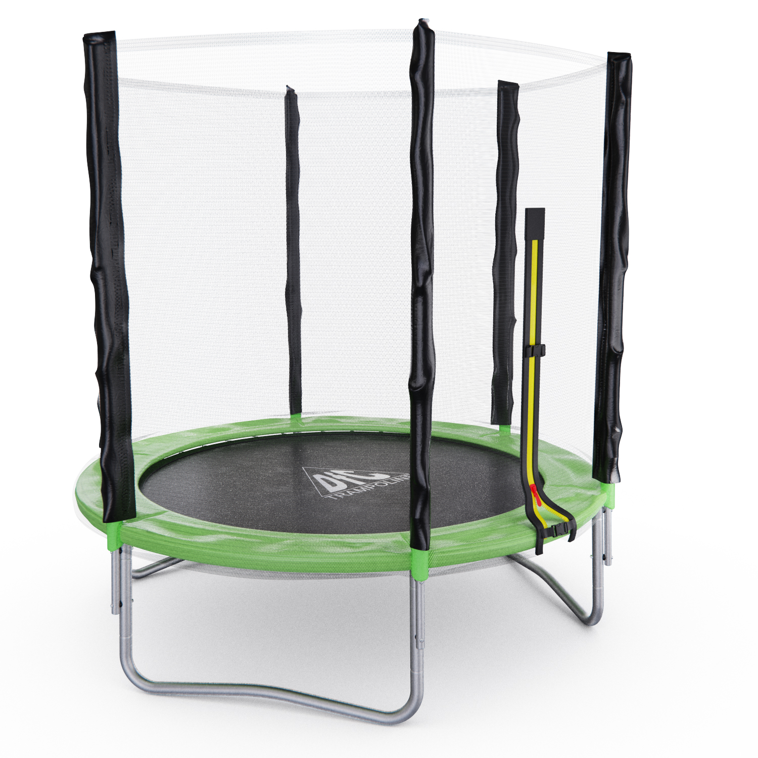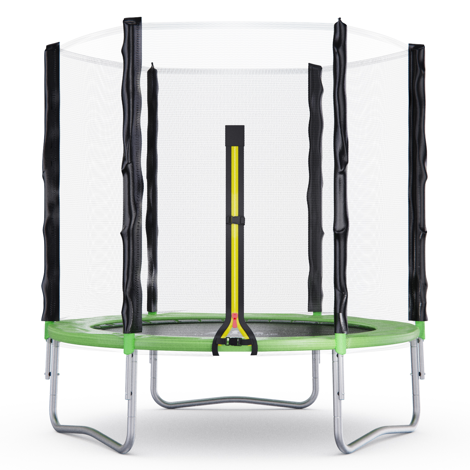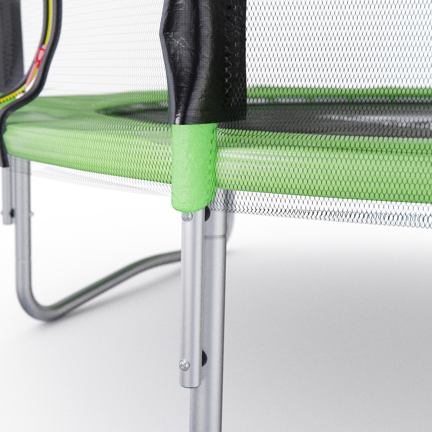 Стойки под защитную сетку изготовлены из стальных труб диаметром 25 миллиметров и толщиной 1 миллиметр. Высота защитной сетки составляет 150 сантиметров, что обеспечивает полную безопасность при прыжках на батуте.