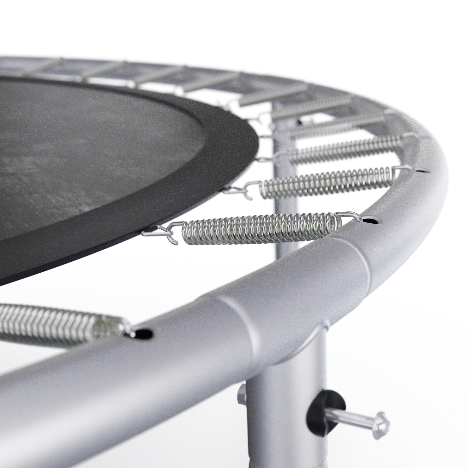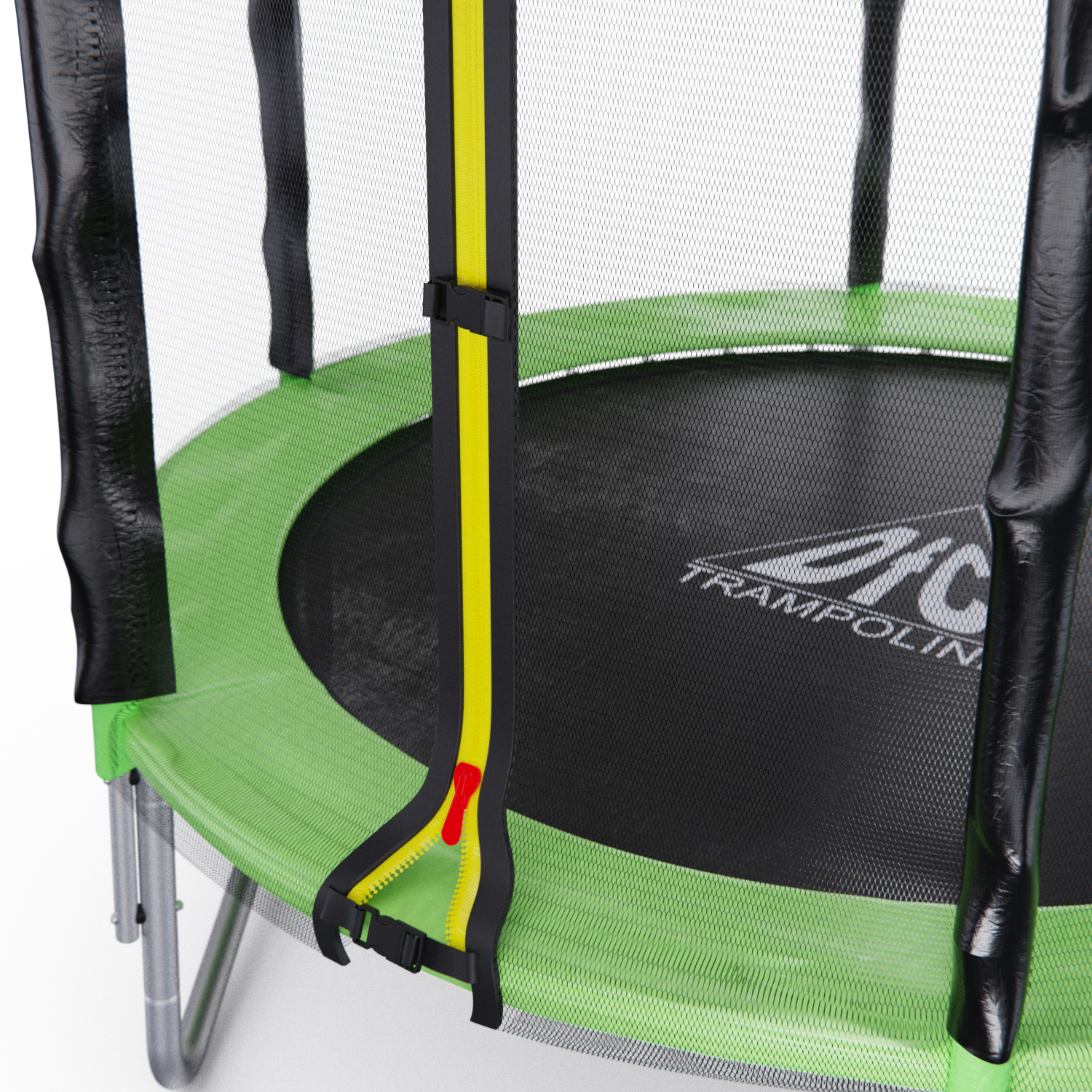Основная рама изготовлена из трёх стальных труб диаметром 38 миллиметров и толщиной 1,2 миллиметра, что обеспечивает ее прочность и долговечность. Ножки U-образной формы, выполнены из стальных труб диаметром 38 миллиметров и толщиной 1 миллиметр, что придает батуту устойчивость и надежность.