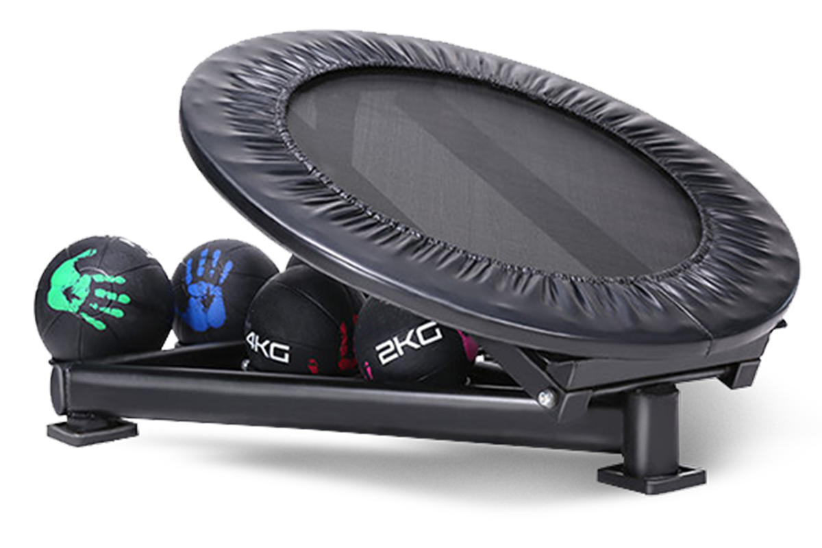 Броски тяжелых или легких медболов в сетку батута с разных положений