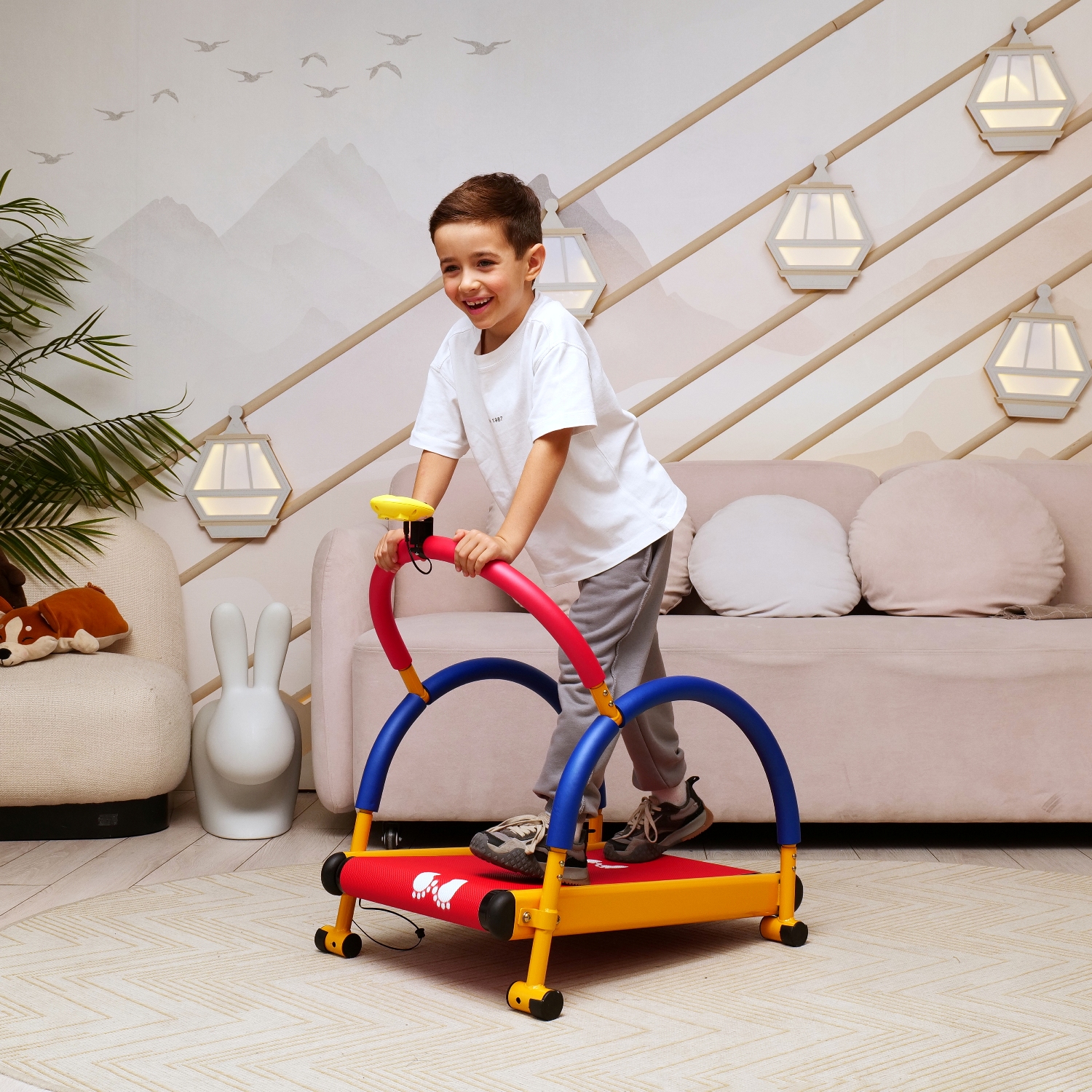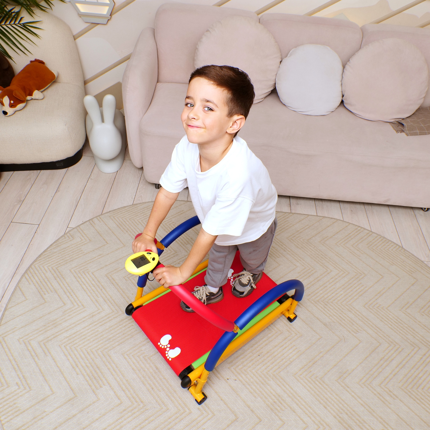 Безопасная детская беговая дорожка для домашнего спортзала. Ваш ребенок самостоятельно инициирует движение бегового полотна. Полотно, находясь под наклоном, создаёт эффект «восхождения в горку».