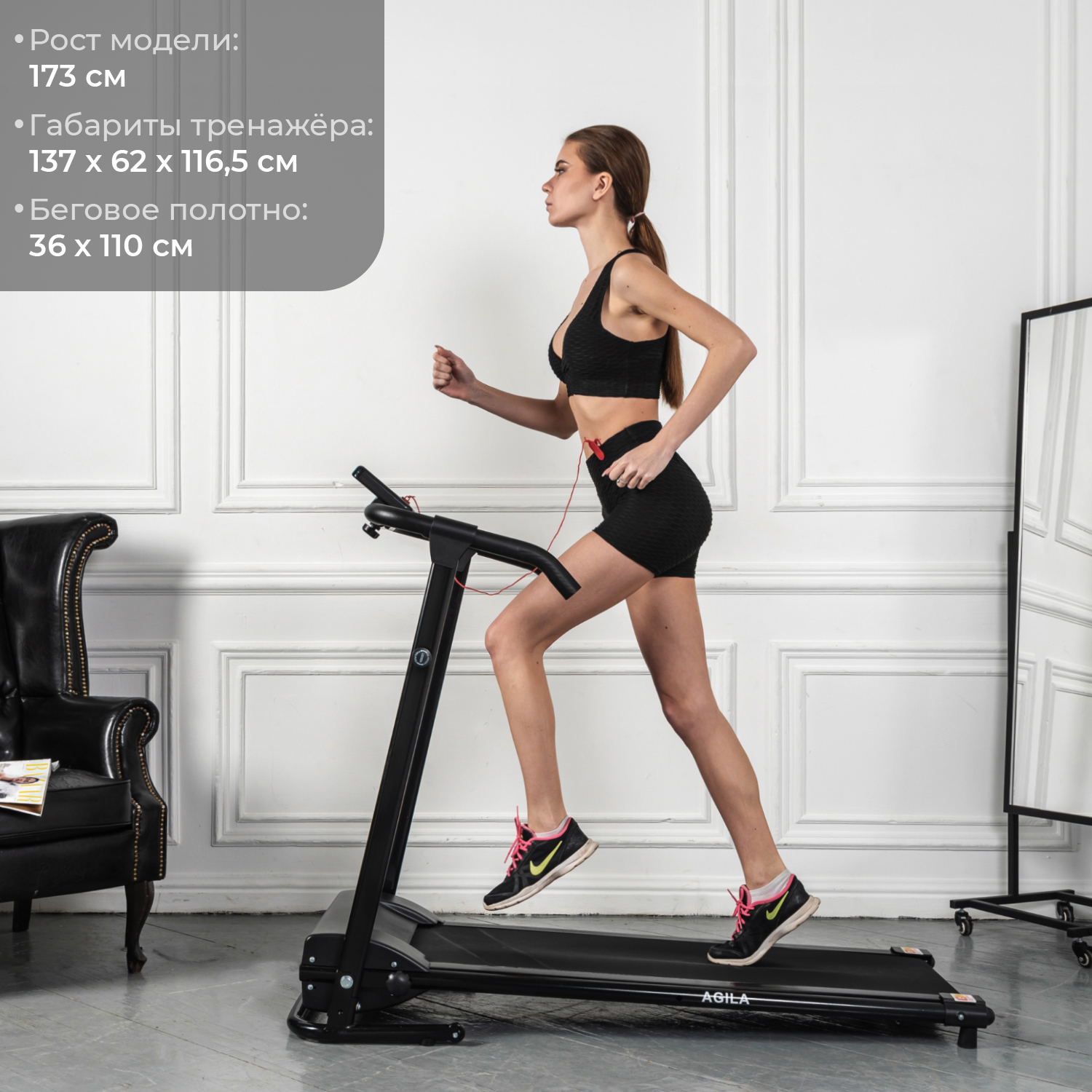 Электрическая беговая дорожка для занятий дома. Тренажер начального уровня с мотором мощностью 1 л.с. Шаг изменения скорости беговой дорожки 0,1 км/ч.