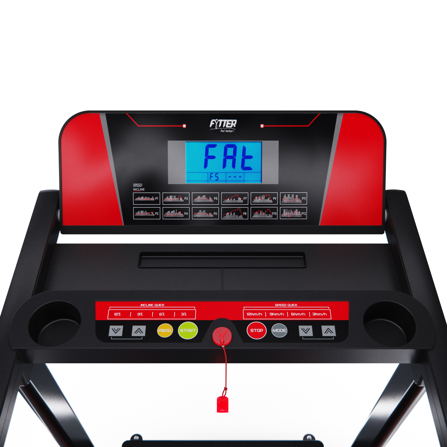 Беговое полотно регулируется по углу наклона от 0 до 15° с консоли. Воспользуйтесь быстрыми кнопками на панели Fytter 7SR, либо постепенно меняйте угол с помощью кнопок «+» и «-».