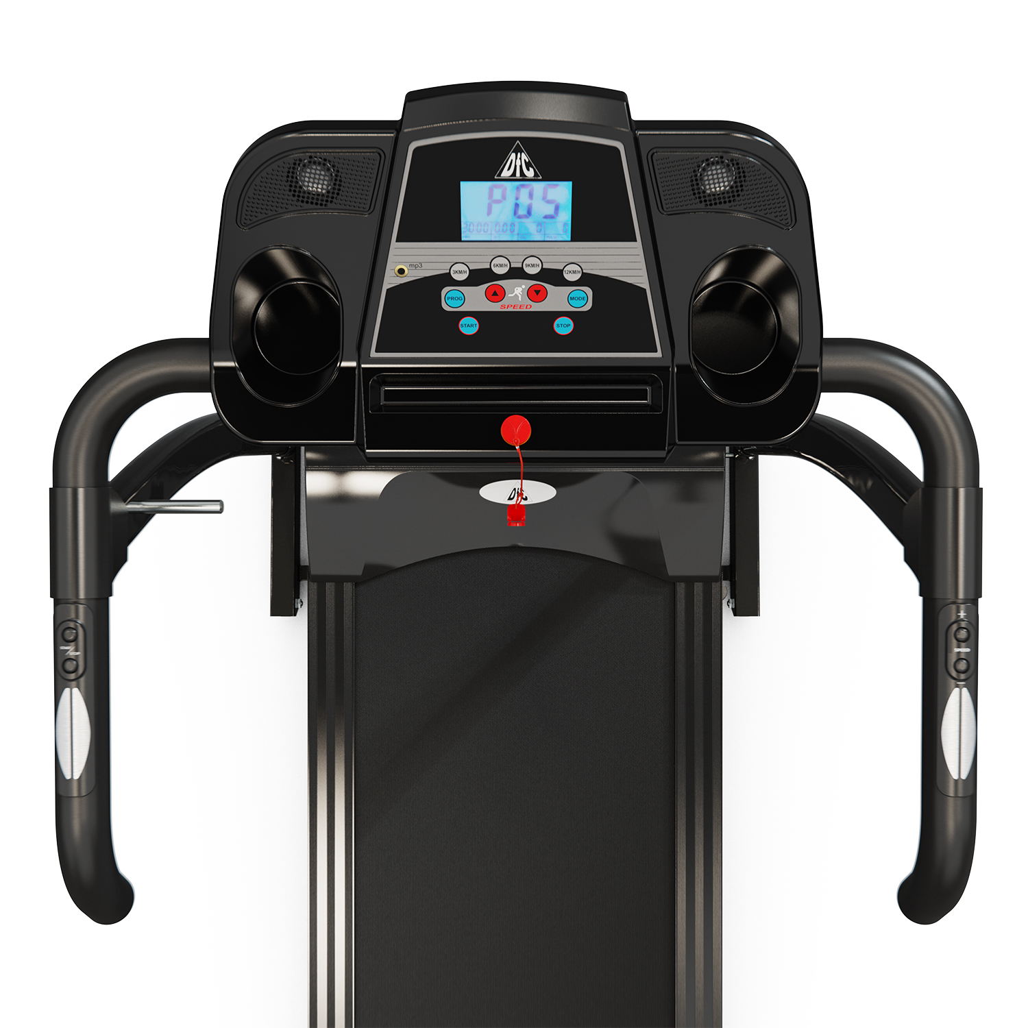 На поручнях расположены датчики пульса. Для точности измерения частоты сердечных сокращений (ЧСС) во время тренировки рекомендуем приобрести отдельно набор DFC W117: кардиопояс + часы - монитор. Показания консоли: скорость, время, расстояние, калории, пульс.