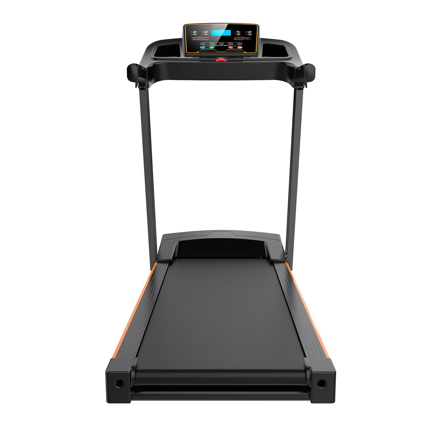 Консоль беговой дорожки оснащена LCD-дисплеем с голубой подсветкой, отображает всю необходимую пользователю информацию во время тренировки: скорость, время, дистанция, сжигаемые калории, пульс.