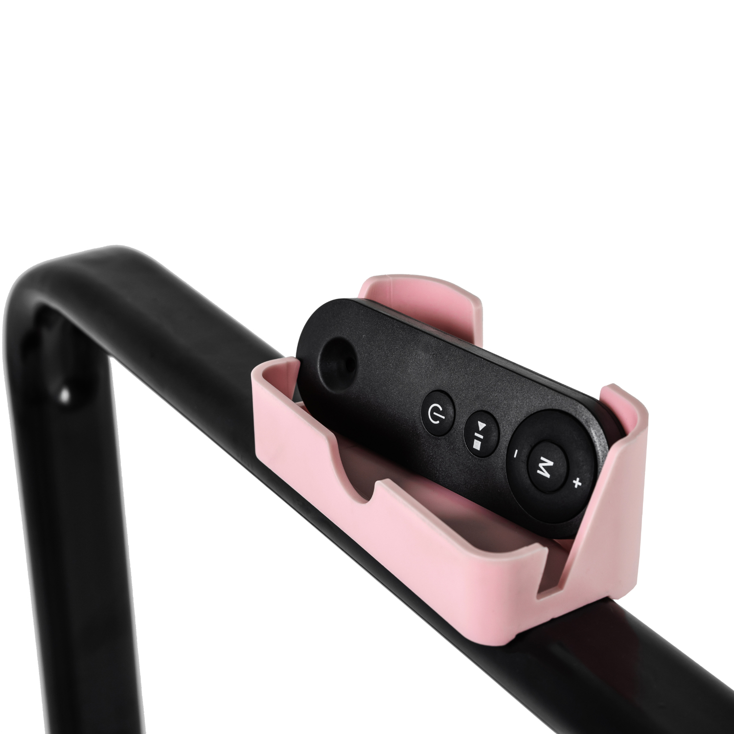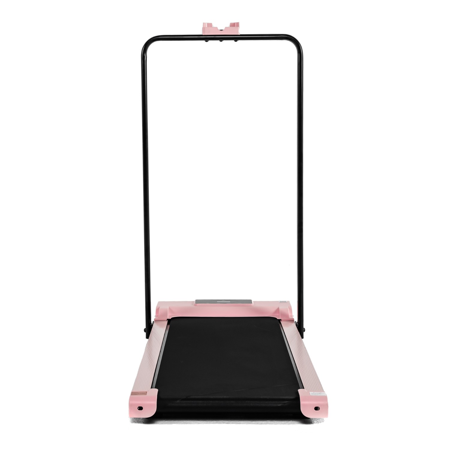 На дорожке установлен удобный складной поручень с держателем под девайс и пульт. После занятий поручень убирается, и тренажер получается очень тонким, всего 12,5 см.