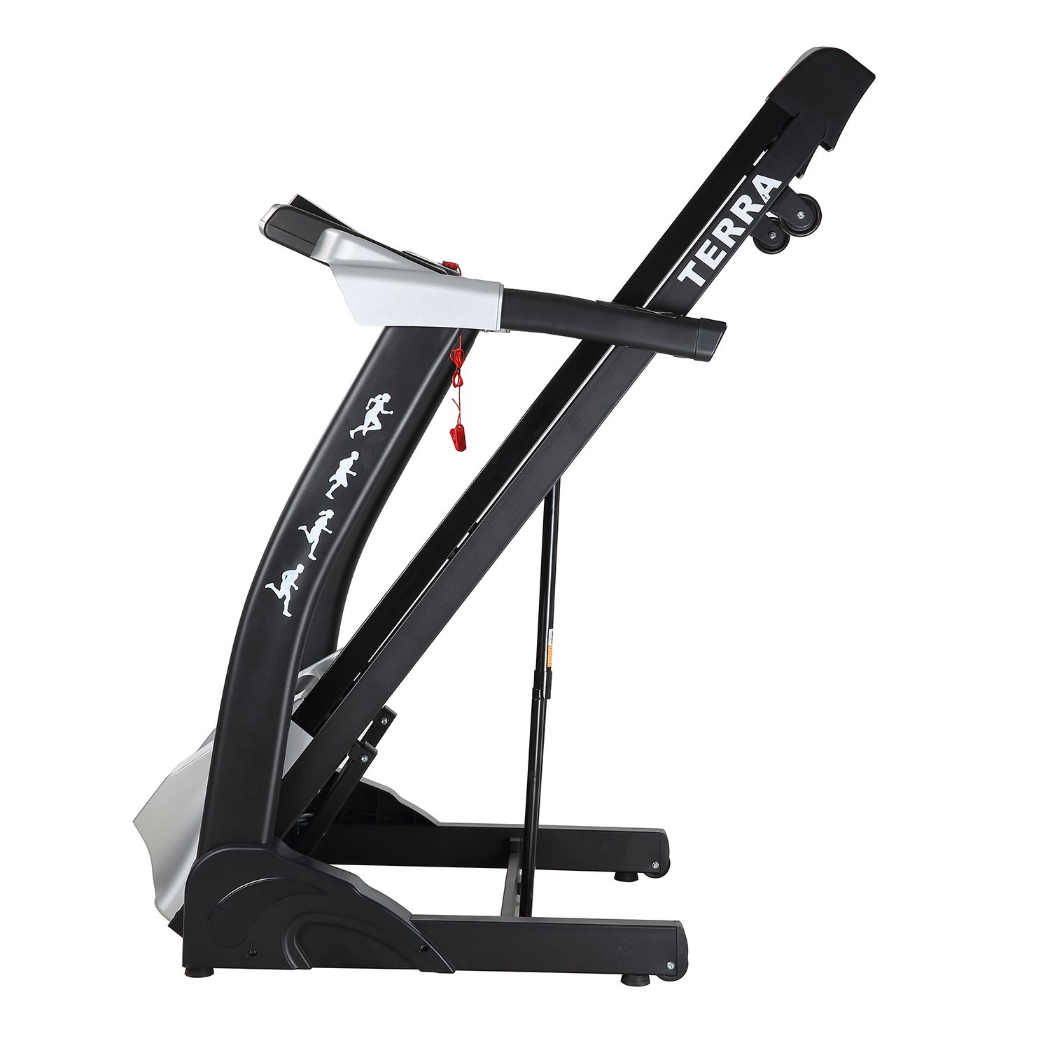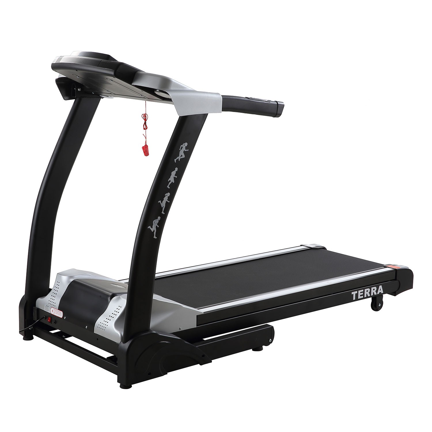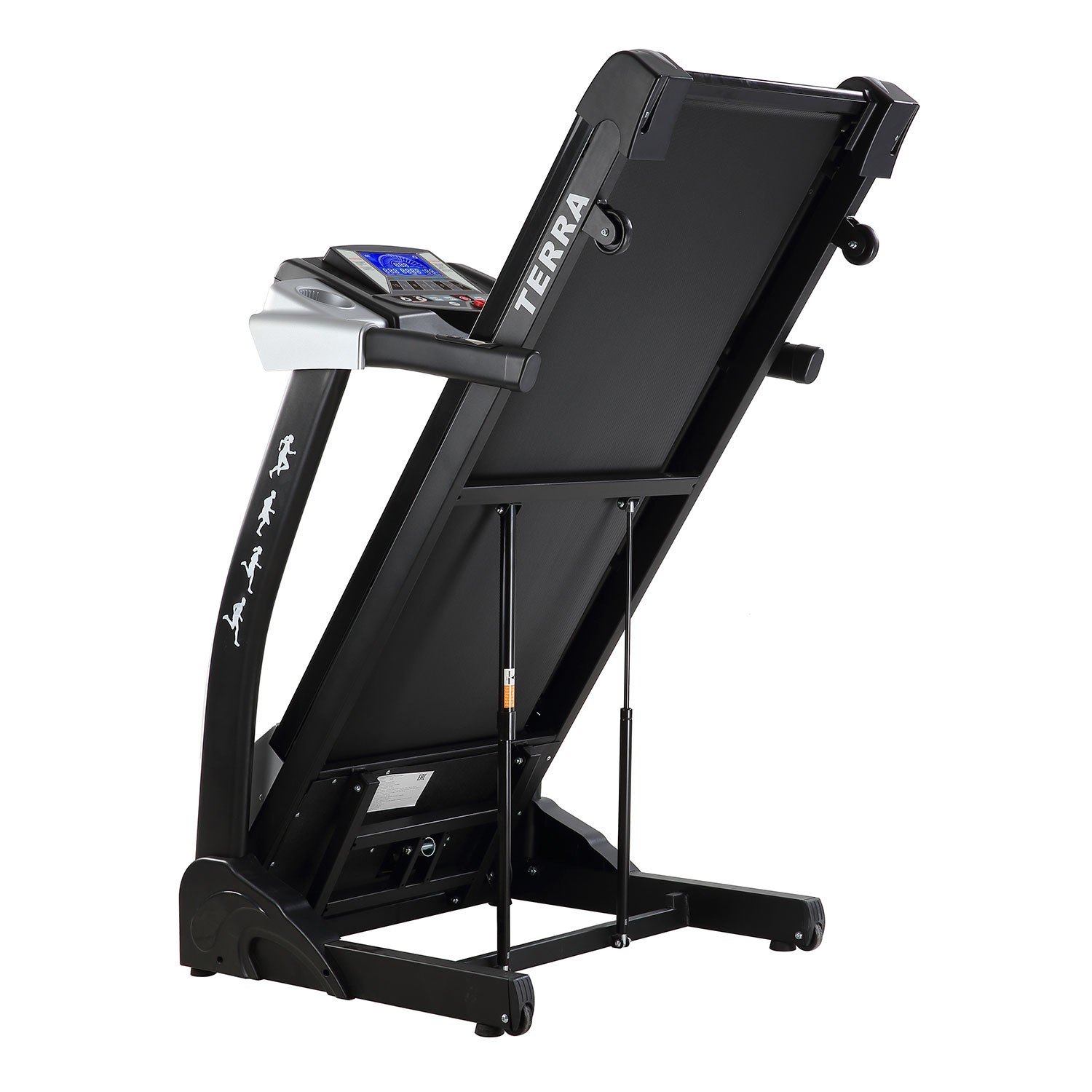 Дека толщиной 18,5 мм и 8 встроенными амортизаторами. Электрическое изменение угла наклона бегового полотна.