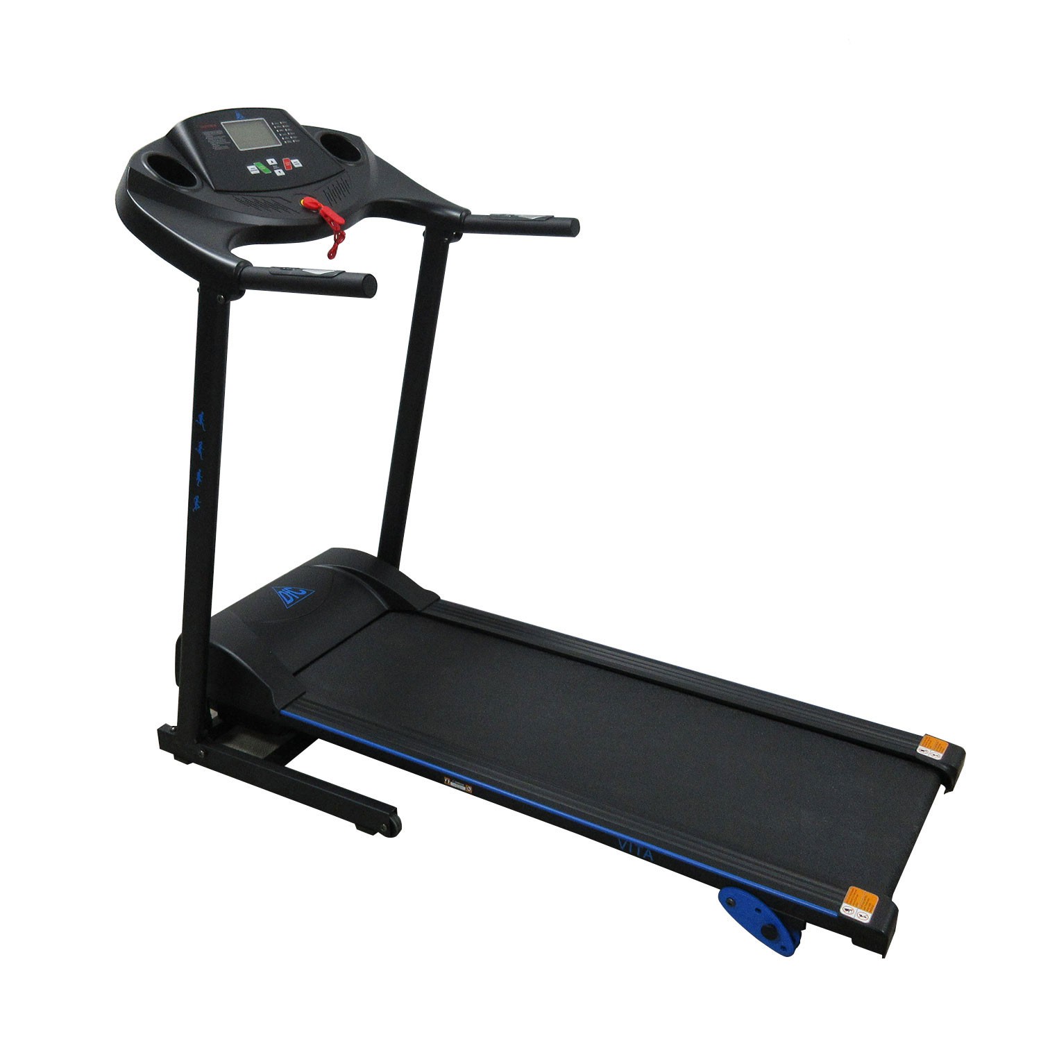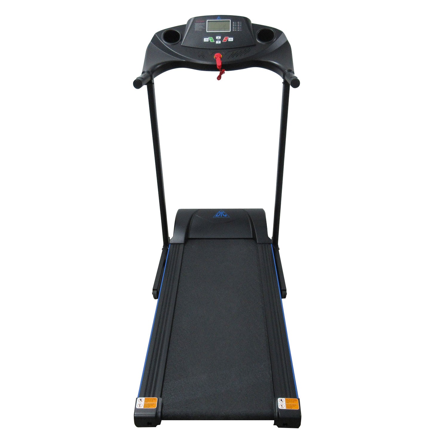 Электрическая беговая дорожка для занятий дома. Тренажер начального уровня с мотором мощностью 1,5 л.с. Шаг изменения скорости 0,1 км/ч. 12 встроенных программ и возможность регулировки угла наклона бегового полотна в 3-х положениях помогут разнообразить ваши тренировки. Складная конструкция с помощью встроенного амортизатора позволяет поднять полотно после тренировки и экономить пространство до следущего занятия. На поручнях расположены датчики пульса. Для точности измерения частоты сердечных сокращений (ЧСС) во время тренировки рекомендуем приобрести отдельно набор DFC W117: кардиопояс + часы - монитор. Показания консоли: скорость, время, расстояние, калории, пульс.