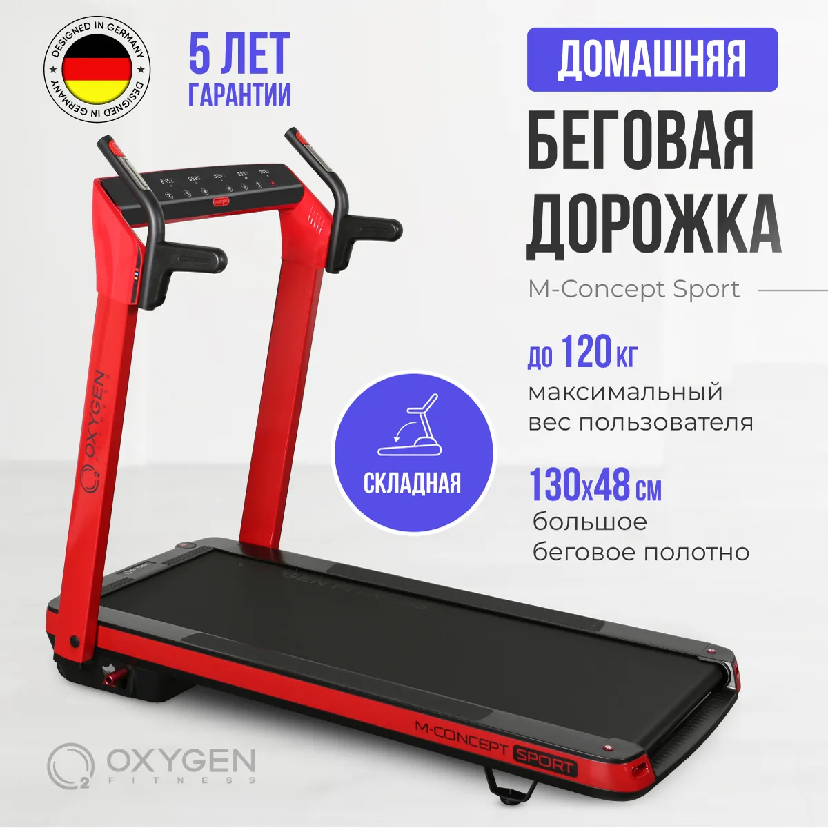 OXYGEN FITNESS™ M-Concept - это принципиально иной подход к компактным беговым дорожкам. Да, возможно, толщина здесь немного больше, чем в ультратонких аналогах. Но это настоящая, полноценная беговая дорожка. На ней можно комфортно и эффективно заниматься, на ней можно достигать реальных результатов в улучшении своей физической формы и, наконец, она безопасна. Итак, давайте посмотрим на характеристики. В M-concept Sport установлен надежный двигатель производства японской Fuji Electric, его мощность составляет 2.25 л.с. в режиме постоянной эксплуатации (или 4.05 л.с. при пиковых нагрузках). Именно мощный двигатель позволяет разогнать полотно до 14 км./ч. Важно, что размер полотна просто огромный для такого компактного тренажера - рабочая беговая поверхность составляет 130 см. в длину и 48 см. в ширину. По второму параметру дорожка вообще приближается к клубному уровню. Более того, в M-Concept Sport есть даже автоматическая регулировка угла наклона от 0 до 12% - за счет чего значительно увеличивается вариативность тренировок. Еще одна ахиллесова пята ультракомпактов - амортизация. По факту ее нет - как бы производитель не доказывал обратное. При такой тонкой раме поставить полноценную систему амортизации невозможно. В серии M-Concept, за счет большей толщины рамы, вопрос решен радикально - здесь стоят сразу 6 профессиональных эластомеров VCS™. Это именно та амортизация, которая устанавливается на профессиональные беговые дорожки.
