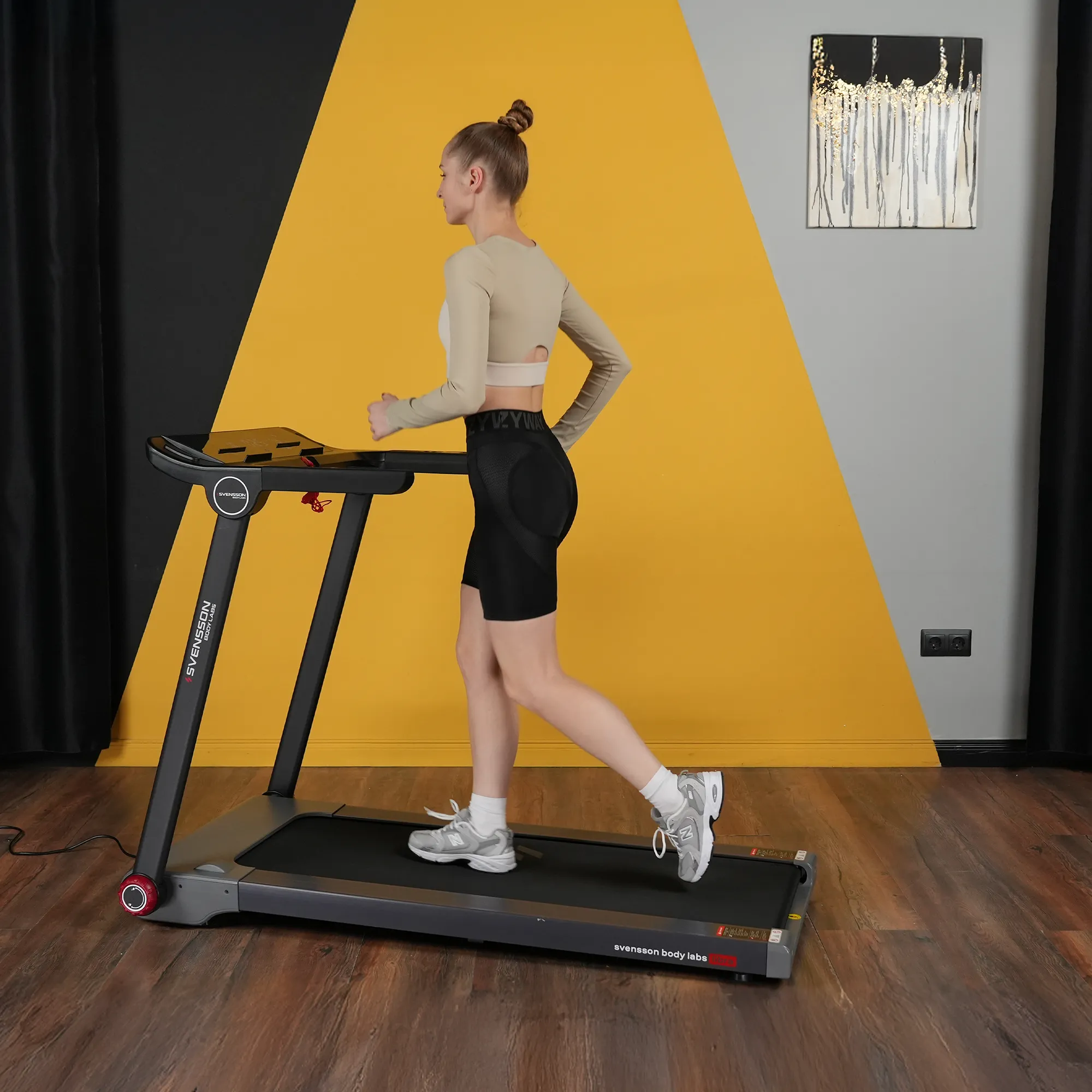 Беговая дорожка SVENSSON BODY LABS LIBRA — это надежное решение для тех, кто хочет поддерживать физическую активность в домашних условиях. С максимальной нагрузкой до 130 кг и мощным двигателем 2,25 л.с. (пиковая мощность 4,4 л.с.), данная модель обеспечивает плавный и комфортный бег с диапазоном скорости от 1 до 15 км/ч. Это позволяет пользователям адаптировать тренировки под свои индивидуальные потребности, начиная с легкой разминки и заканчивая интенсивными пробежками. Беговая дорожка оснащена системой амортизации, состоящей из 8 эластомеров и 2 демпфирующих подушек, что позволяет значительно снизить нагрузку на суставы и минимизировать риск травм. Кроме того, дорожка имеет прочное беговое полотно толщиной 1,6 мм и антикоррозийную обработку рамы, что обеспечивает долговечность и надежность устройства. Управление на поручнях с кнопками СТАРТ/СТОП и регулировки скорости добавляет удобства во время тренировок. С дорожкой SVENSSON BODY LABS LIBRA вы можете наслаждаться тренировками с музыкой благодаря встроенной колонке Bluetooth. Дисплей LED с голубой индикацией показывает важные параметры: время, скорость, дистанцию, калории и пульс, что помогает отслеживать прогресс. Также предусмотрен режим быстрого старта и ручной режим, что делает тренировки более адаптивными. Беговая дорожка поддерживает подключение к мобильным приложениям через Bluetooth для более эффективного контроля за тренировками. Беговая дорожка SVENSSON BODY LABS LIBRA — это отличный выбор для тех, кто хочет заниматься спортом с комфортом и эффективно достигать своих фитнес-целей в домашних условиях! Ключевые преимущества SVENSSON BODY LABS LIBRA: • мощный двигатель: 2,25 л.с. с пиковой мощностью 4,4 л.с. для достижения скорости до 15 км/ч; • эффективная амортизация: система из 8 эластомеров и 2 демпфирующих подушек для комфорта и безопасности; • современный LED дисплей: отображает ключевые данные тренировки на русском и английском языках; • мультимедийные возможности: встроенная колонка Bluetooth и возможность подключения к мобильным приложениям для улучшения тренировочного процесса; • складная конструкция: позволяет удобно хранить дорожку, занимая минимальное пространство (длина в сложенном виде — 60 см).