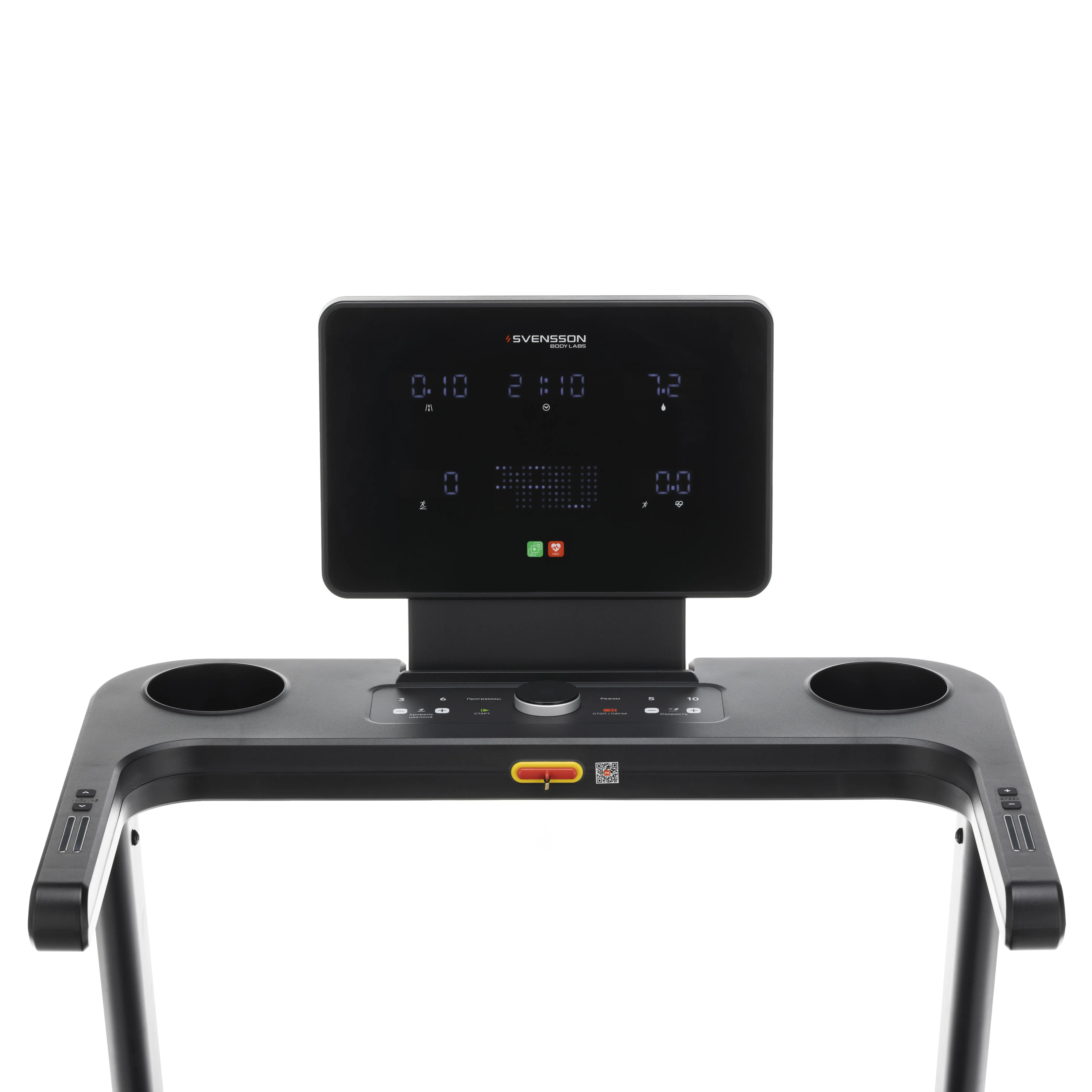 Время, скорость, дистанция, уровень наклона, калории, пульс, шаги, жироанализатор, программа, статус Bluetooth