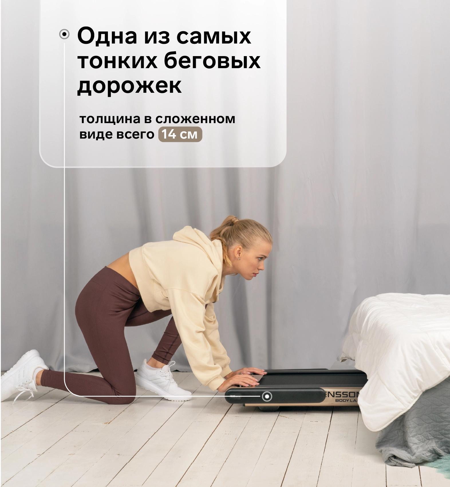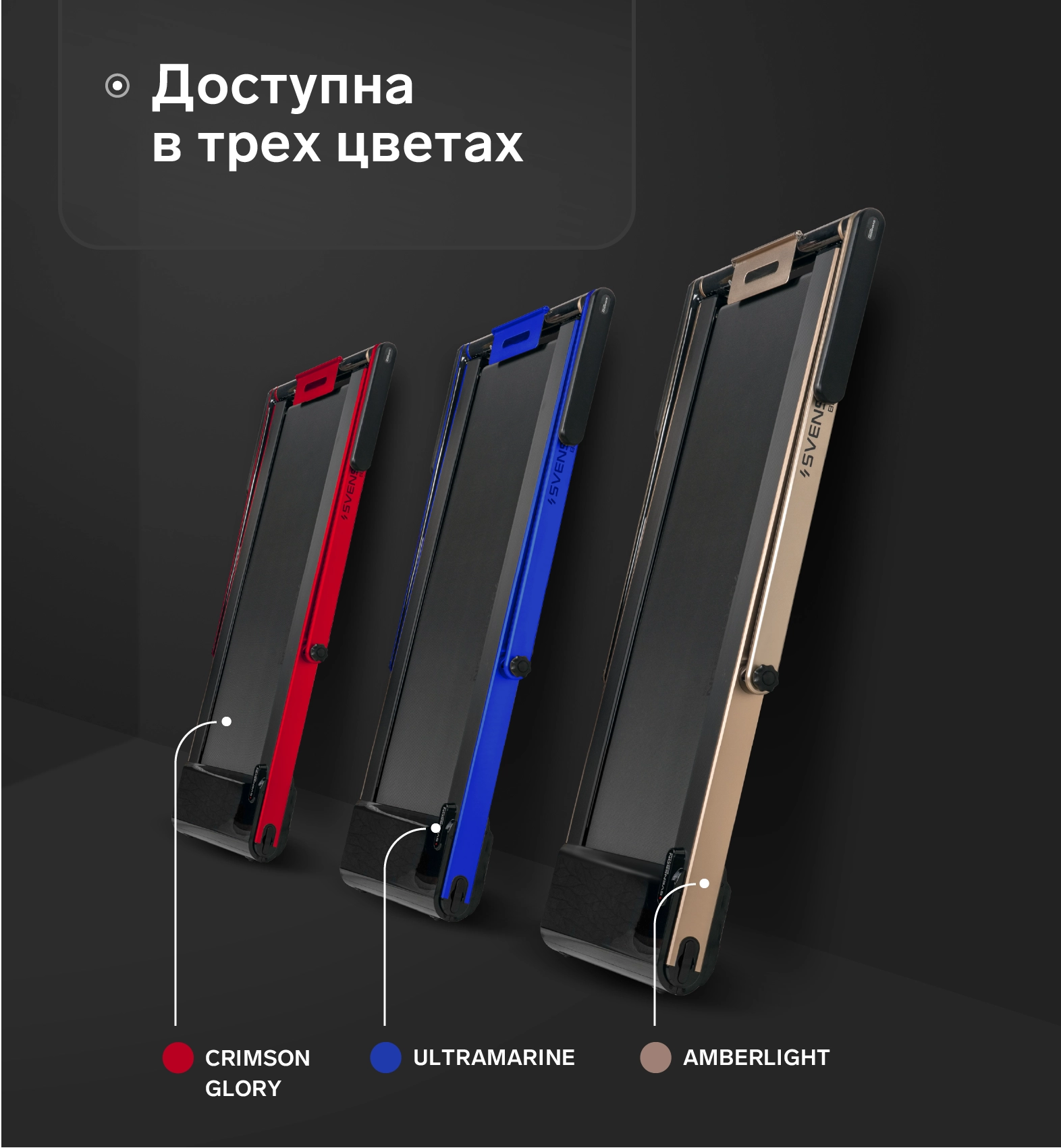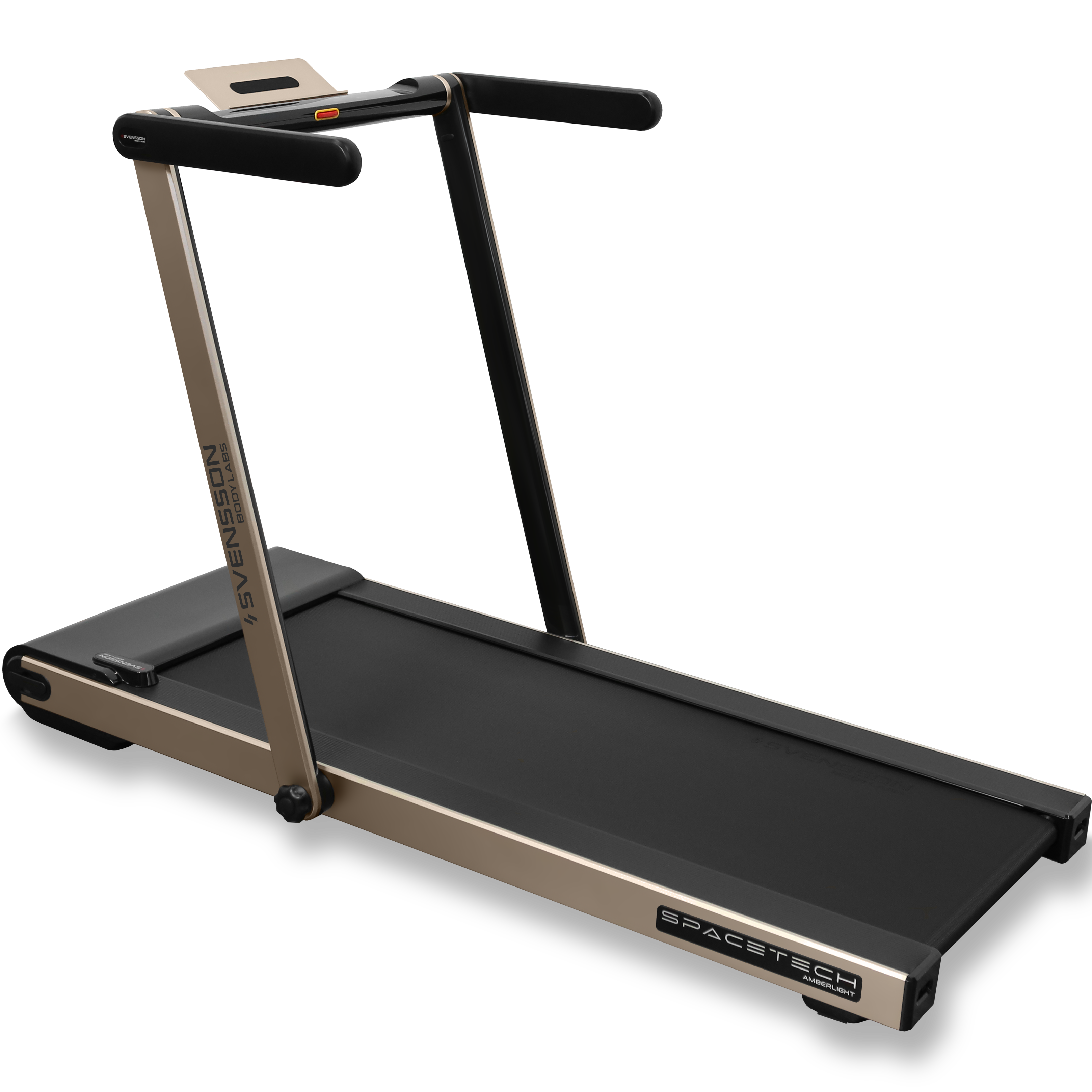 Svensson Body Labs SPACETECH - второй креативный продукт шведского дизайнера Патрика Хагборга (Patrik Hagborg), созданный специально для Jörgen Svensson. В названии дорожки обыгрываются два значения слова space - космос и пространство . Необычная архитектура тренажера, его мощь, совершенство форм и технологий, а также ни на что не похожие цветовые решения, включая уникальный Ultramarine - это отсылка к уже существующим и будущим шагам человека в космическом пространстве. Со вторым значением слова гораздо проще - компактность. Всю эту красоту от Патрика Хагборда инженеры Jörgen Svensson смогли упаковать в ультракомпактный дизайн, дать отличные технические характеристики и возможность использования прямо из коробки. Да, это красивая, технологичная, удобная в хранении ультракомпактная беговая дорожка, которая будет готова к использованию сразу же как вы снимите с нее защитную пленку - и при всем при этом это абсолютно полноценная беговая дорожка, заниматься на которой может пользователь любого уровня подготовки!
