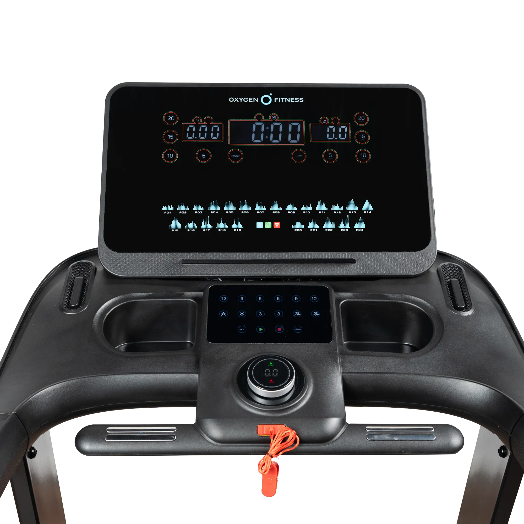 Полукоммерческая беговая дорожка OXYGEN FITNESS ARGON LED PRO – это надежный и высокопроизводительный тренажер, предназначенный как для домашнего, так и для коммерческого использования. С мощным двигателем в 3,5 л.с. (пиковая мощность 5,8 л.с.) и максимальной скоростью 22 км/ч, эта дорожка идеально подходит для интенсивных тренировок. Конструкция выполнена из высокопрочных материалов, что обеспечивает долговечность и устойчивость даже при регулярных нагрузках. Беговое полотно с антискользящим покрытием и размером 145х54 см предоставляет достаточное пространство для комфортного бега. Кроме того, система амортизации с шестью профессиональными динамическими эластомерами VCS™ снижает нагрузку на суставы, что делает тренировки более безопасными, а электронная регулировка угла наклона с 20 уровнями позволяет адаптировать нагрузку под индивидуальные потребности пользователя. Консоль с тремя LED дисплеями предоставляет полную информацию о тренировке: скорость, калории, время, дистанция, пульс и уровень наклона. Дорожка предлагает 32 программы тренировок, включая ручной режим и пульсозависимые программы, что делает каждую тренировку разнообразной и эффективной. Поддержка Bluetooth и возможность подключения к мобильным приложениям Fitshow™ и Kinomap™ позволяют следить за прогрессом и получать новые впечатления от тренировки. Беговая дорожка OXYGEN FITNESS ARGON LED PRO – идеальный выбор для тех, кто ищет сочетание качества, функциональности и современных технологий в своих тренировках. Ключевые преимущества OXYGEN FITNESS ARGON LED PRO: • высокая мощность и производительность: двигатель 3,5 л.с. обеспечивает надежную работу и быстрые результаты; • разнообразие программ: 32 предустановленные программы для тренировки по индивидуальным целям; • комфортная амортизация: система VCS™ защищает суставы и обеспечивает комфорт при беге; • современные технологии: Bluetooth-колонка и возможность подключения к мобильным приложениям для оптимизации тренировок; • удобство использования: отсеки для аксессуаров, подставка для планшета и транспортировочные ролики делают использование дорожки максимально удобным.