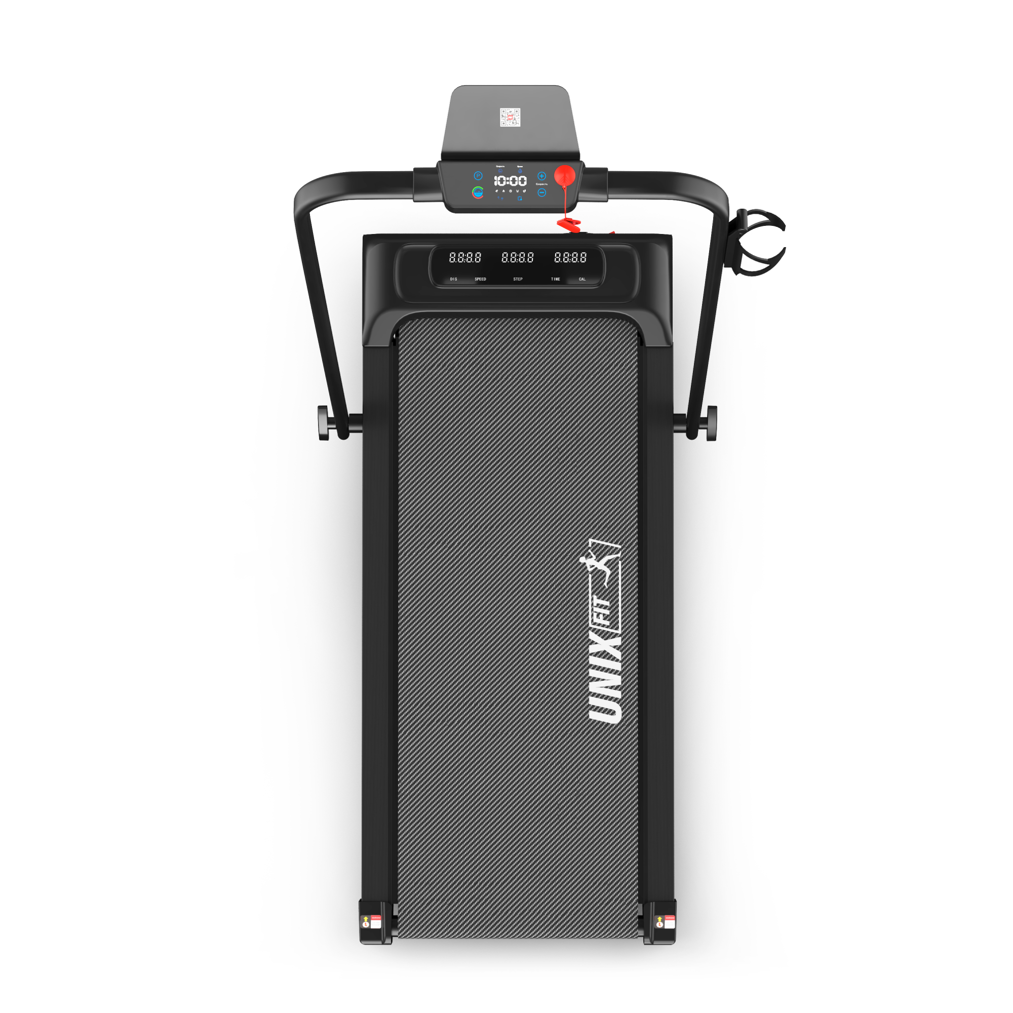 Беговая дорожка электрическая складная UNIX Fit R-230 PLUS — идеальный выбор для тех, кто стремится поддерживать себя в отличной форме прямо у себя дома! Этот ультратонкий кардиотренажер сочетает в себе компактность, инновационные технологии и превосходные характеристики, позволяющие вам заниматься спортом комфортно и эффективно каждый день. Благодаря своей уникальной конструкции и лёгкости складного механизма, эта беговая дорожка без поручней легко адаптируется к любым условиям вашей квартиры или загородного дома. Компактность кардио тренажера R-230 PLUS позволяет установить его даже в небольших помещениях, сохраняя свободное пространство. Два удобных транспортировочных ролика облегчают перемещение тренажера внутри помещения, делая тренировки дома комфортными и удобными для всей семьи.