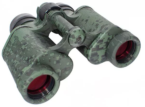 Бинокль БПЦ5 8x30 «Пиксель» в компактном алюминиевом корпусе обеспечивает 8-кратное приближение и отличается широким полем зрения (150 мм). Оптика модели основана на призмах Porro, благодаря многослойному просветлению оптических элементов можно наслаждаться яркой картинкой даже в пасмурную погоду. Яркое солнце не помешает наблюдениям ? на поверхность объективов нанесен антибликовый состав. Бинокль можно использовать знойным летом и холодной зимой ? диапазон рабочих температур составляет от ?40 до +50 °С. Конструкция защищена от пыли и влаги, фокусировка осуществляется с помощью центрального барабана. Есть опция подстройки диоптрий и возможность подобрать оптимальное межзрачковое расстояние. Пиксельное покрытие корпуса в зеленых цветах поможет в ситуациях, требующих маскировки.