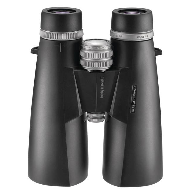 Бинокль Eschenbach Trophy D 8x56 ED – высококачественный оптический прибор из современных материалов. Светосильные объективы с апертурой 56 мм собирают достаточно света для наблюдений при любой погоде и освещенности. Сумеречный фактор бинокля – 21,2. В конструкции использованы roof-призмы с фазовой коррекцией. Оптика изготовлена из стекла ED, на линзы нанесено 2 типа покрытия: полное многослойное просветляющее и диэлектрическое зеркальное. Корпус сделан из магналия – сплава алюминия с магнием. Азотное заполнение препятствует образованию конденсата на линзах.