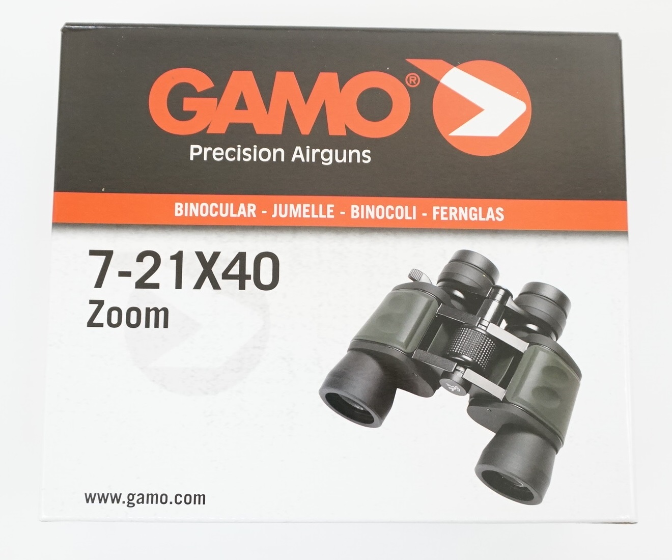 является профессиональным полноразмерным биноклем, разработанным с наличием в нем ZOOM, т.е. технологии увеличения изображения. Прибор произведен испанской компанией Gamo, которая уже на протяжении более ста лет занимается изготовлением пневматического оружия и его аксессуаров.