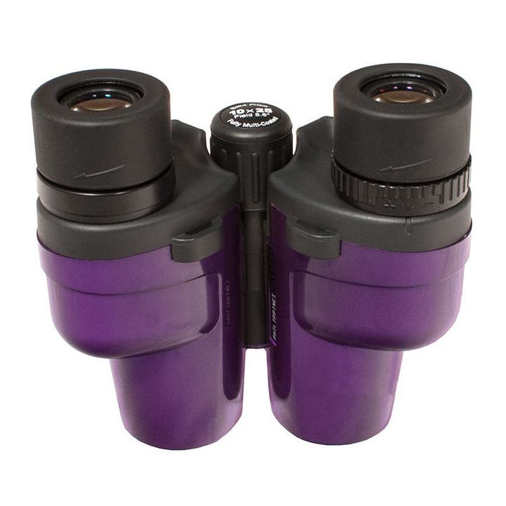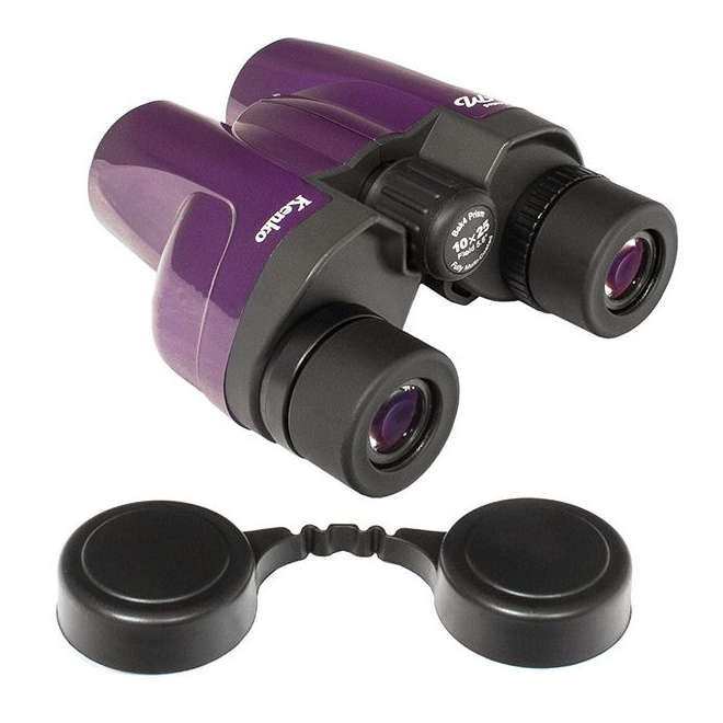 Бинокль Kenko Ultra View 10x25 FMC, фиолетовый – необычный оптический прибор в ярком пластиковом корпусе. Он дает 10-кратное увеличение и подойдет как для взрослых, так и для детей. Апертура 25 мм позволяет вести эффективные наблюдения при свете дня. Бинокль понравится путешественникам, туристам, посетителям спортивных соревнований. Оптика на базе призм Porro изготовлена из стекла марки BaK-4, на линзы нанесено полное просветление, что повышает светопропускание бинокля. Прибор передает четкую и яркую картинку в естественных цветах. Пользоваться биноклем удобно благодаря небольшому весу, центральной фокусировке и возможности регулировать поворотно-выдвижные наглазники. На правом окуляре есть кольцо диоптрийной коррекции. Межзрачковое расстояние регулируется в широком диапазоне.
