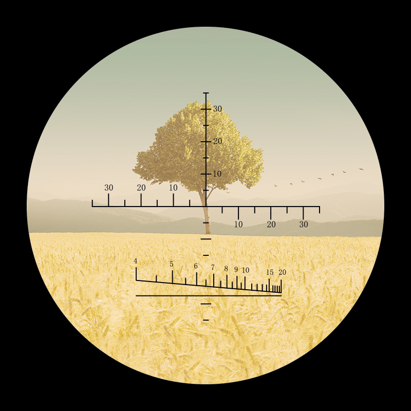 Обрезиненная поверхность корпуса; угломерная сетка и дальномерная шкала