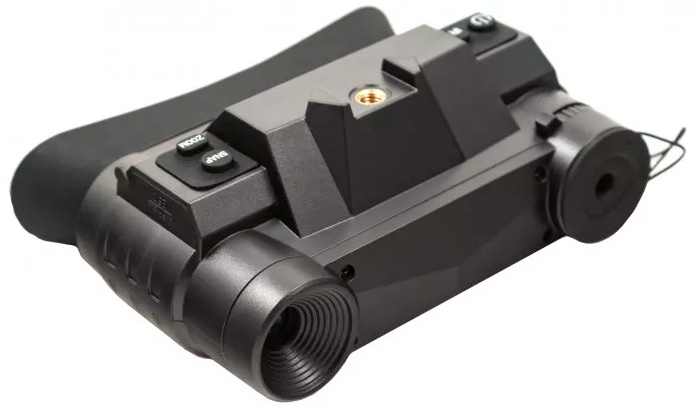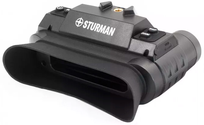С биноклем STURMAN NV9000 контроль за территорией становится возможным даже в полной темноте. Наблюдение в темное время суток производится за счет ИК-подсветки с длиной луча 940 нм, которая не видна ни животным, ни средствам ночного видения. Бинокль предлагает мощное увеличение от 5 до 40 крат, которое может быть эффективно применено не только ночью, но и днем. Модель имеет встроенный рекордер и микрофон, с помощью чего можно записывать видео с разрешением 1856x848 пикс. Работает прибор от блока питания или от двух батареек типа CR123, которых хватит на 6 часов работы. Для экономии заряда предусмотрен режим автовыключения.