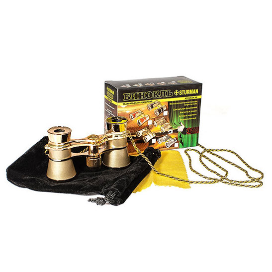 Театральный бинокль STURMAN 3x25 – миниатюрный и легкий помощник для любителей театра и эстрадных выступлений. Отличные оптические возможности гармонично сочетаются со стильным дизайном прибора. Бинокль с 3-кратным увеличением и 25-миллиметровыми объективами поможет рассмотреть декор и костюмы, оценить танцевальные движения, проследить за актерской игрой в деталях. Наблюдать действие через бинокль удобно даже из первых рядов благодаря короткой дистанции ближнего фокуса. В основу оптики бинокля легла галилеевская схема. Матовые и глянцевые детали корпуса выполнены в оттенках игристого вина, а в шейный шнурок вплетены золотистые нити. В комплект включен футляр-мешочек для хранения инструмента.