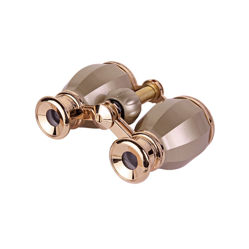 Классическая галилеевская оптическая схема с центральной внутренней фокусировкой, заключенная в лакированный корпус цвета шампань с позолоченными окулярами. Четырехкратное увеличение и широкое поле зрения позволят вам насладиться представлением даже с галерки.
