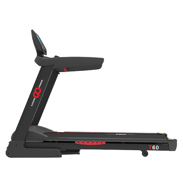 CardioPower T60 - стильная и функциональная беговая дорожка для занятий в домашних условиях. Самые современные технологии, усиленная рама и качественные комплектующие обеспечивают надежную эксплуатацию и отличные технические характеристики.ИДЕАЛЬНЫЕ ВОЗМОЖНОСТИ ДЛЯ ИНТЕНСИВНЫХ ТРЕНИРОВОКМаксимальная скорость бега до 18 км/ч, шаг изменения 0,1 км/ч;Автоматически регулируемый угол наклона до 18 градусов обеспечивает высокую вариативность интервальных тренировок с углом наклона;Большое беговое полотно 150 х 52 см создает комфортные условия для бега;Мощный электродвигатель 3,25 л.с. с пиковой мощностью 4,25 л.с. от NNNSE CO., LTD. с максимально тихим и плавным ходом;усиленная стальная рама, ударопрочный пластик и высококачественная MDF дека 18 мм выдерживают условия интенсивной эксплуатации пользователям с весом до 150 кг.ПРОДУМАННЫЙ ФУНКЦИОНАЛ ДЛЯ КОМФОРТНЫХ ТРЕНИРОВОКУдобная консоль с клавишами быстрого управления и широким 8-ми дюймовым LCD дисплеем с мягкой голубой подсветкой предоставляет полную информацию о текущих показателях тренировки: скорость, время, расстояние, калории, угол наклона, частота пульса, выбранная программа;Целевые программы для максимальной мотивации и результативности тренировок;HR Программы - Пульсозависимые программы, изменяют нагрузку для поддержания заданного целевого уровня пульса;Клавиши быстрого выбора Скорости и Угла наклона;Возможность подключения любимой музыки через MP3 и встроенной акустической систему;Bluetooth для подключения внешних устройств;Держатель для планшета, зарядка USB, держатель для бутылки и вентилятор для создания комфортных условий во время тренировки;Легкий и удобный гидравлический механизм складывания SmartFold с функцией плавного опускания позволяет быстро и безопасно сложить беговую дорожку до максимально компактного размера, а транспортировочные ролики без усилий переместить в случае необходимости.СТАНДАРТ НАДЕЖНОСТИ И БЕЗОПАСНОСТИУсиленная конструкция рамы;Высокая надежность комплектующих и качество сборки по самым передовым технологиям;Инновационная система амортизации AirCushion с эластомерами снижает нагрузку на суставы, делая тренировки максимально безопасными;Контроль пульса: Встроенные сенсоры пульса и возможность подключения кардиопояса обеспечивают точный контроль над сердечным ритмом.