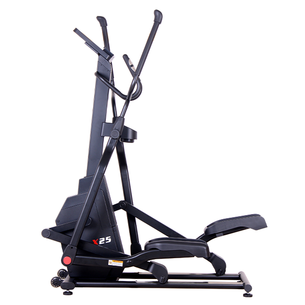 CardioPower X25 компактный, но при этом очень функциональный переднеприводной эллиптический тренажер, который при своих минимальных размерах имеет полноценные технические характеристики. Комфортная длина шага 45 см, и минимальный Q-фактор, который составляет всего 8,8 см, обеспечивают эффективную и правильную нагрузку, сохраняя правильное положение ног. X25 - лучший выбор для тех, кому важно получить доступный тренажер с отличной функциональностью. Усиленная конструкция Рама тренажера выполнена из усиленного стального профиля, гарантирует высокую надежность и допускает максимальный вес пользователя до 120 кг. Инертный маховик Маховик весом 15 кг. с высокой инерционной нагрузкой и плавностью хода обеспечивает высокий комфорт тренировки. Правильная биомеханика движения Эргономичное положение тренирующегося и совершенная биомеханика движения ног и верхнего плечевого пояса, обеспечивают высокую эффективность и безопасность тренировки. А увеличенная амплитуда движения позволяет задействовать максимальное количество мышц. Мягкие педали, расположены под отрицательным углом, предотвращают онемение ахиллово сухожилия. Расстояние между педалями (Q-Factor) всего 8,8 см обеспечивают естественное положение ног и это один из самых лучших показателей в своем классе. Электронная система нагружения Электронная система нагружения с внешними магнитами обеспечивает плавную регулировку нагрузки и имеет 16 уровня сопротивления. Тренажер подойдет как начинающих, так и продвинутых пользователей. Оптимальная длина шага Длина шага тренажера составляет 45 см, что идеально подойдет для комфортных и эффективных тренировок людям любого роста и комплекции. При этом запаса длины шага будет достаточно и для пользователей с ростом от 185 см. Цветной высококонтрастный ЖК Дисплей Информативный ЖК-дисплей диагональю 5 дюймов обладает высокой контрастностью и предоставляет полную информацию о параметрах тренировки. Отображаемые параметры: Скорость, Дистанция, Время, Расчет потраченных калорий, Информацию о пульсе (ЧСС). Контроль пульса Контроль пульса осуществляется с помощью сенсоров пульса, встроенных в поручни. А также тренажер имеет систему контроля пульса по беспроводной передаче сигнала от нагрудного кардиопояса (приобретается отдельно). Разнообразие тренировочных программ Тренажер имеет 14 предустановленных программ тренировки, которые позволяют максимально разнообразить и усовершенствовать тренировочный процесс. От ручной настройки до специально разработанных интервальных, пульсозависимых и программ для тренировки выносливости. Полный фитнес контроль Функция Bodyfat позволяет оценивать и контролировать уровень жировой ткани, а фитнес-тестирование Fitness Recovery скорость восстановления, для комплексной оценки уровня физической подготовки.