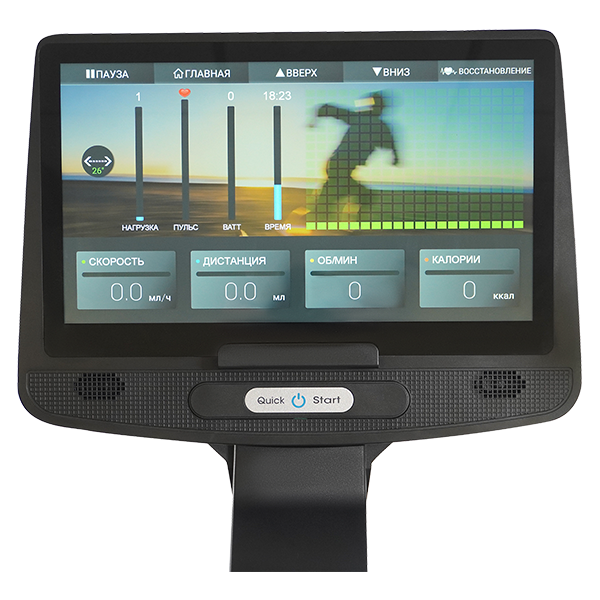 CardioPower X700 - Профессиональный эллиптический тренажер, выполнен в инновационном дизайне и имеющий регулируемую длину шага и самую совершенную биомеханикой движения среди аналогов. Запатентованная система движения Smart Suspension System создает непревзойденные ощущения плавности и естественности хода, при этом обеспечивая высокую эффективность тренировок, с максимальным вовлечением в работу мышц как нижней части тела, так и мышц верхнего плечевого пояса и рук. Естественное, комфортное движениеИнерционный вес маховика составляет 30 кг., что создает ощущение высокой плавности и инертности движения, без рывков и остановок. А уникальная биомеханика движения делает занятия на тренажере максимально естественными и комфортными. Равномерное распределения нагрузки обеспечивают максимальную эффективность и безопасность тренировок. Инновационая конструкцияЗапатентованная инновационная система движения Smart Suspension System c удобной системой регулировок является одним из самых совершенных технологический решений на сегодняшний день. Регулируемая длина шага Изменяемая длина шага от 45 до 66 см., сделает тренировки универсальными, позволяя не только настроить максимально комфортный шаг, но и добавить вариативности в тренировки, включая в работу максимальное количество мышц. Вместе с изменением длинны шага, так же меняется и высота шага: 46см - нижняя точка: 33.3 см, верхняя точка: 48.6 см; 51см - нижняя точка: 30.5 см, верхняя точка: 46.5 см; 56см - нижняя точка: 27.3 см, верхняя точка: 44 см; 61см - нижняя точка: 25 см, верхняя точка: 42 см; 66см - нижняя точка: 22.3 см, верхняя точка: 39.5 см; Полностью автономная работа Тренажер не требует подключения к сети и работает полностью автономно, питание дисплея осуществляется за счет встроенного генератора. Электронная система нагруженияЭлектромагнитная система нагружения EMS обеспечивает плавную регулировку нагрузки и имеет 32 уровня сопротивления. Широкая вариативность нагрузки и возможность точной настройки сопротивления подойдет как начинающим, так и продвинутым пользователям. Эффективная работа рукПравильная биомеханика движения и положение занимающегося обеспечивает эффективную работу верхнего плечевого пояса и рук. Поручни для рук имеют мультипозиционный хват, что способствует большей эффективности, универсальности и комфорту тренировок. Компактный размерПри своей непревзойденной универсальности и функциональности, габариты тренажера составляют всего 150 см х 90 см, что сопоставимо с самыми компактными тренажерами для дома. Цветной сенсорный экранИнформативный Сенсорный TFT дисплей с диагональю 15,6 дюймов с высокой контрастностью предоставляет полную информацию о параметрах тренировки, отображая: Время, Дистанцию, RPM (Количество вращений в минуту), Скорость, Расчет калорий, Информацию о пульсе (ЧСС), Целевую пульсовую зону, Контроль нагрузки в Вт. Усиленная конструкцияРама тренажера выполнена из усиленного стального профиля, что обеспечивает высо...