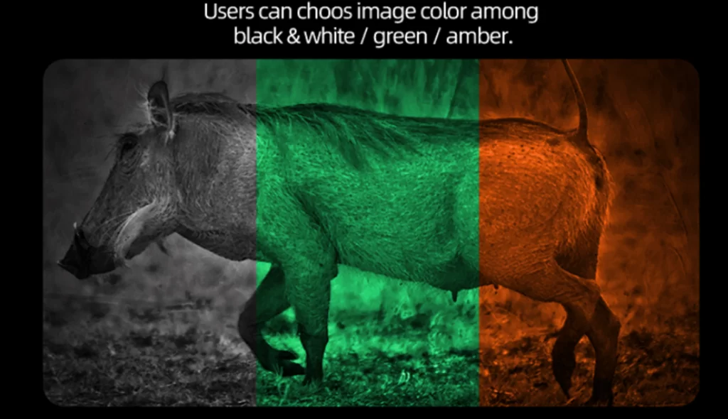 Смена режима наблюдения и выбор цветовой палитры производится путем нажатия функциональной клавиши. Выбирайте оптимальную цветовую схему отображения в зависимости от условий видимости и дистанции наблюдения.