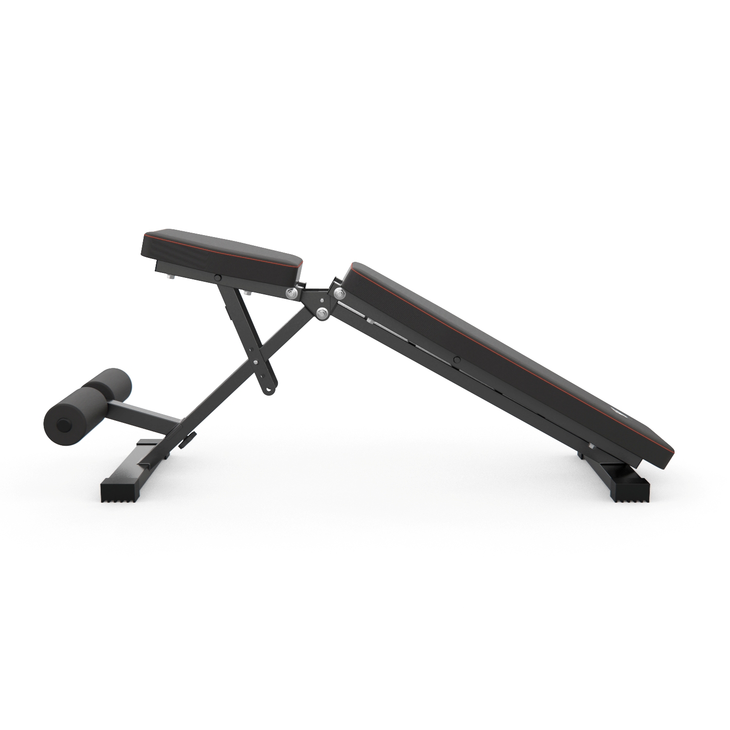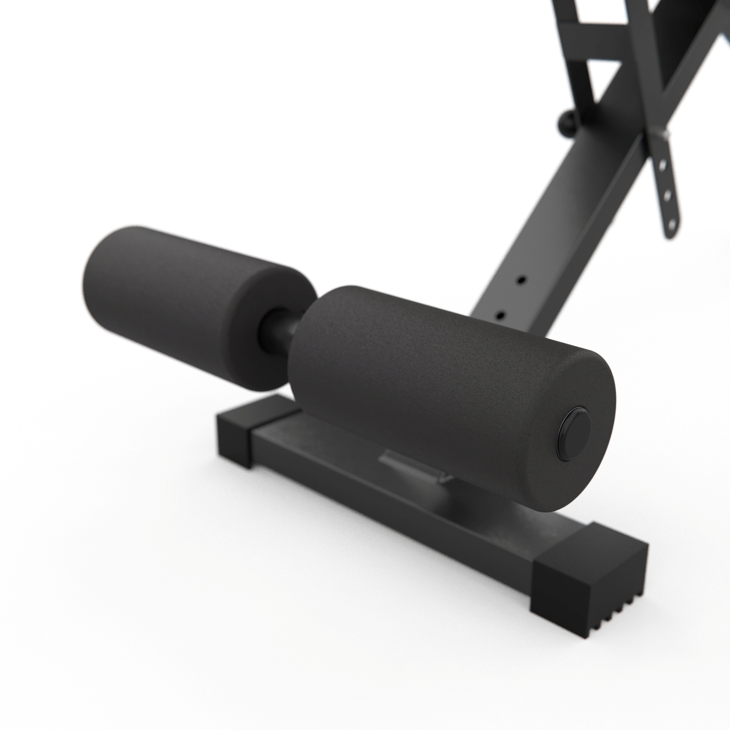 Спинка и сиденье скамьи регулируются. Спинку можно зафиксировать в 7-ми положениях, а сиденье фиксируется в 4-х положениях, которые подходят для выполнения разных упражнений. В передней части скамьи имеются валики в мягкой обивке для фиксации ног, регулирующиеся по высоте на 3 уровня: высота от пола от 18,5 до 23 см.
