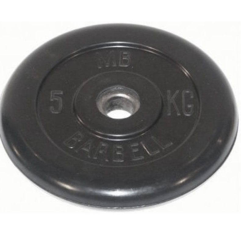 Диск Barrbell обрезиненный литой для гантелей и штанг MB-PltB50-5 Предназначен для штанг, гантелей и тренажеров. Вес диска 5 кг Внутренний диаметр 51 мм. Втулка - металл. Диск цельнометаллический, выполнен из стали. Высокая точность изготовления, максимальное отклонение веса +- 50 г. Внешнее покрытие резина черного цвета. Для сцепления резины со сталью, при обрезинивании используется термоклей. Используется в основном на соревнованиях различного уровня и тренажерных залах. Для производства дисков используются высококачественные материалы. Обрезиненные диски удобны, эстетичны, не гремят и не царапают пол.