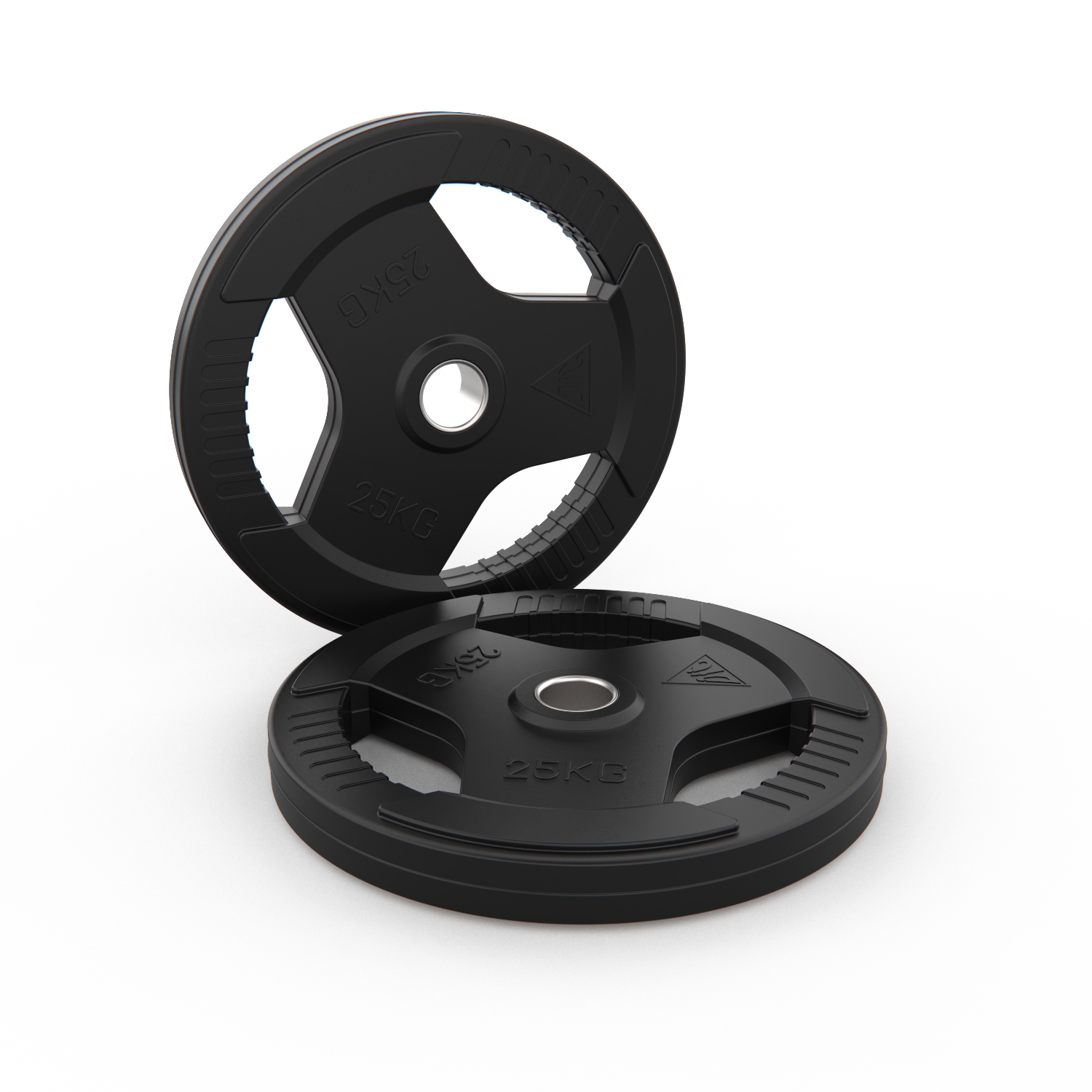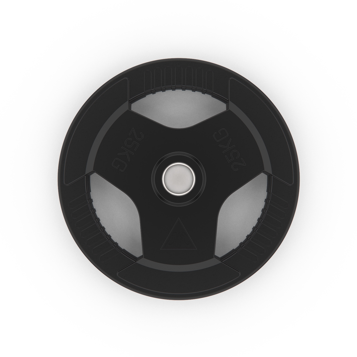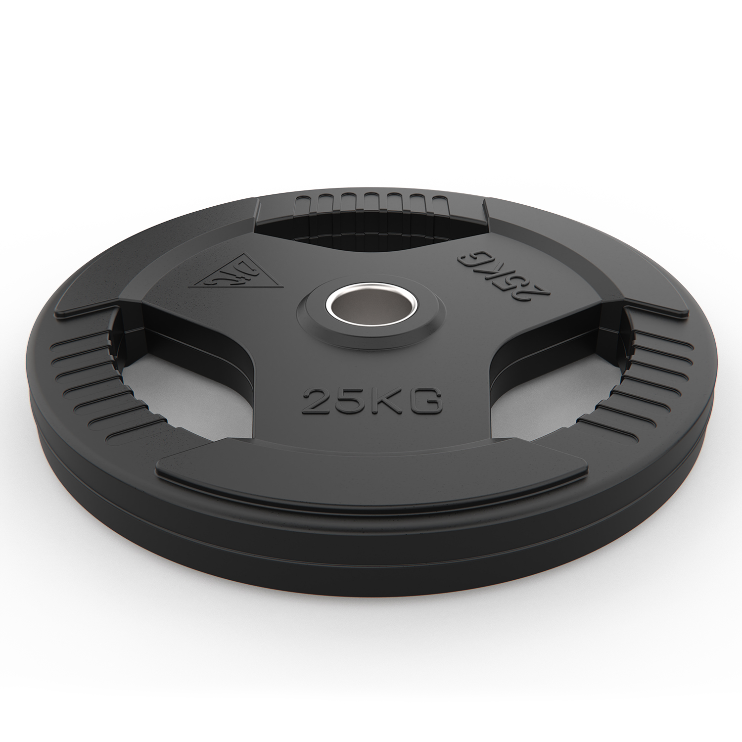 Диск обрезиненный с хватом DFC. Цвет чёрный. Металлическая втулка. Посадочный диаметр 51 мм. Вес диска 25 кг. Удобная форма диска с тремя ручками для хвата с разной стороны. Обрезиненная поверхность не царапает пол при ударе. Диски используются в фитнесе, лечебной физкультуре, бодибилдинге и других спортивных тренировках. Внутренний материал чугун Внешний материал резина Внутренний диаметр 51 мм Вес диска 25 кг Размер диска Ø430 мм, толщина 53 мм - 25 кг Размер упаковки Объем упаковки Вес брутто Бренд DFC Страна производства Китай Гарантия 12 месяцев