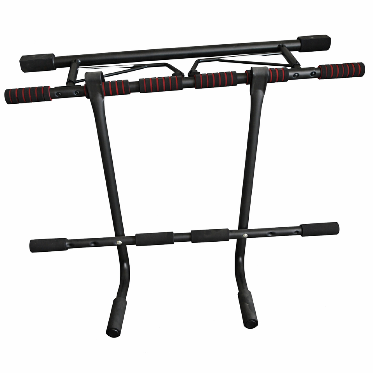 Модель рассчитана на максимальный вес пользователя 130 кг. Конструкция выполнена из прочной высокоуглеродистой стали с элементами из пенопласта и полипропилена, что обеспечивает надёжность и долговечность при ежедневных тренировках. Мягкие ручки и регулируемые дверные защитные накладки создают комфорт и индивидуальную подгонку под любую дверную раму шириной от 69 до 101 см.