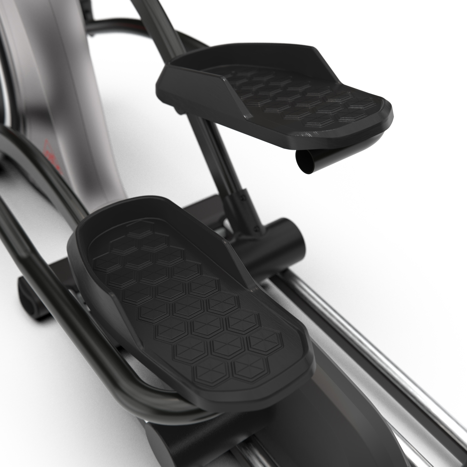 Эллиптический тренажер премиум-класса DFC E180 домашнего использования предназначен для занятий на все группы мышц и кардио-тренировок. Относится к серии Cardio, имеет стильный дизайн, выполнен в благородном чёрном цвете. Особенности тренажёра Эллептик DFC E180 оснащён магнитной системой нагрузки с электронной регулировкой: 24 уровня регулируются с панели управления. Предустановлены 12 программ тренировок, 3 пользовательских и 1 с руководством. Также на 5-тидюймовом LCD дисплее отображаются время, пульс, скорость, уровень нагрузки и другие параметры занятия. На передней консоли также есть подставка под планшет. С консоли можно регулировать угол наклона на 5 уровнях от — 0 до 20 градусов. Максимальный вес пользователя — 150 кг. Длина шага — 50,8 см. Педали имеют нескользящее покрытие и бортики для безопасности. Тренажёр удобно перемещать за счёт транспортировочных роликов и ручки. Компенсаторы неровности пола позволяют устанавливать на неровную поверхность. Шнур питания и адаптер входят в комплектацию.