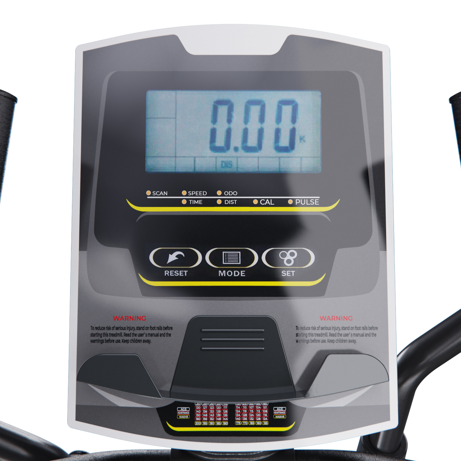 Показания консоли : время, скорость, расстояние, калории, пульс, ODO