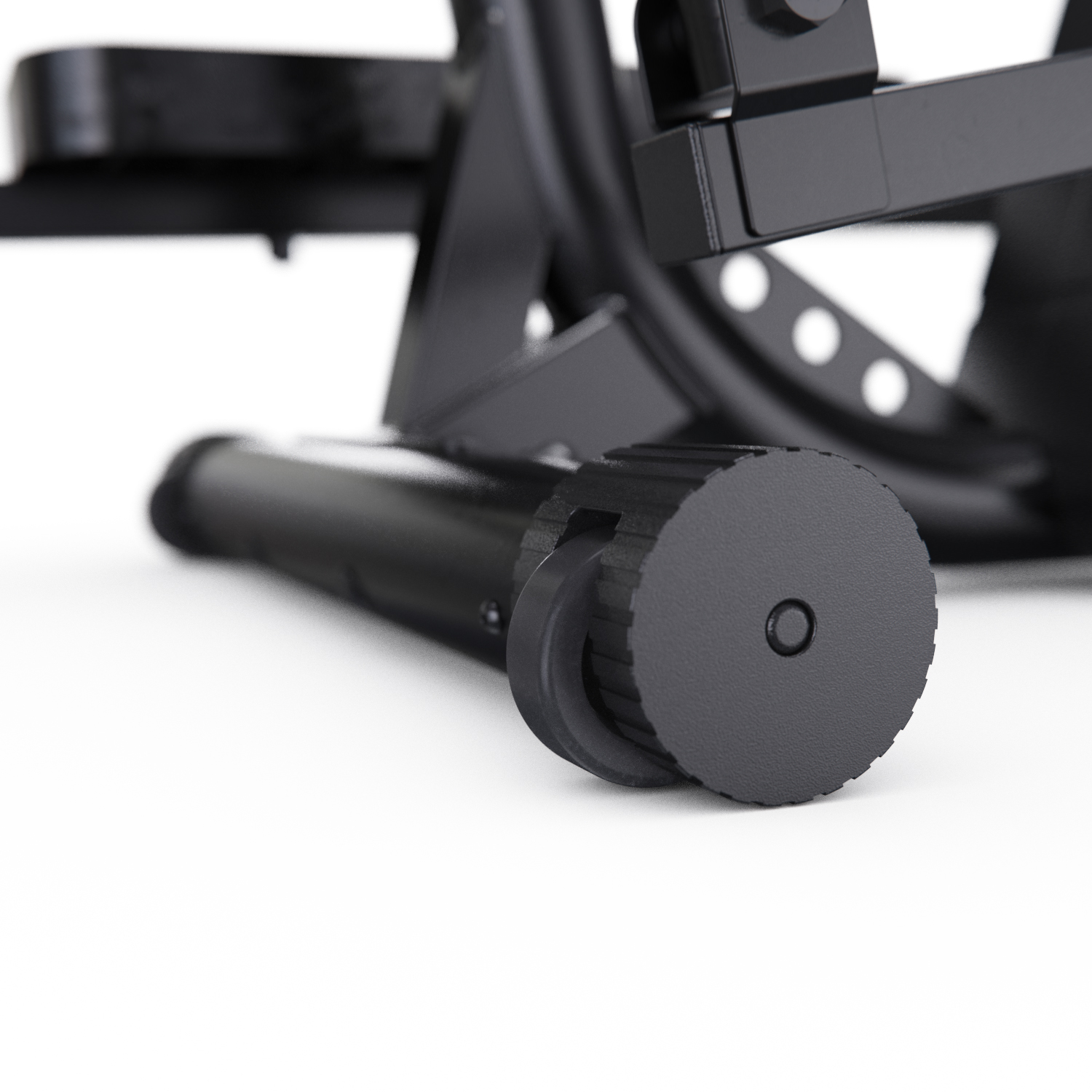 Транспортировочные ролики и компенсаторы неровности пола обеспечивают удобство перемещения и установки тренажера, а также позволяют сгладить неровности пола для более комфортной тренировки.