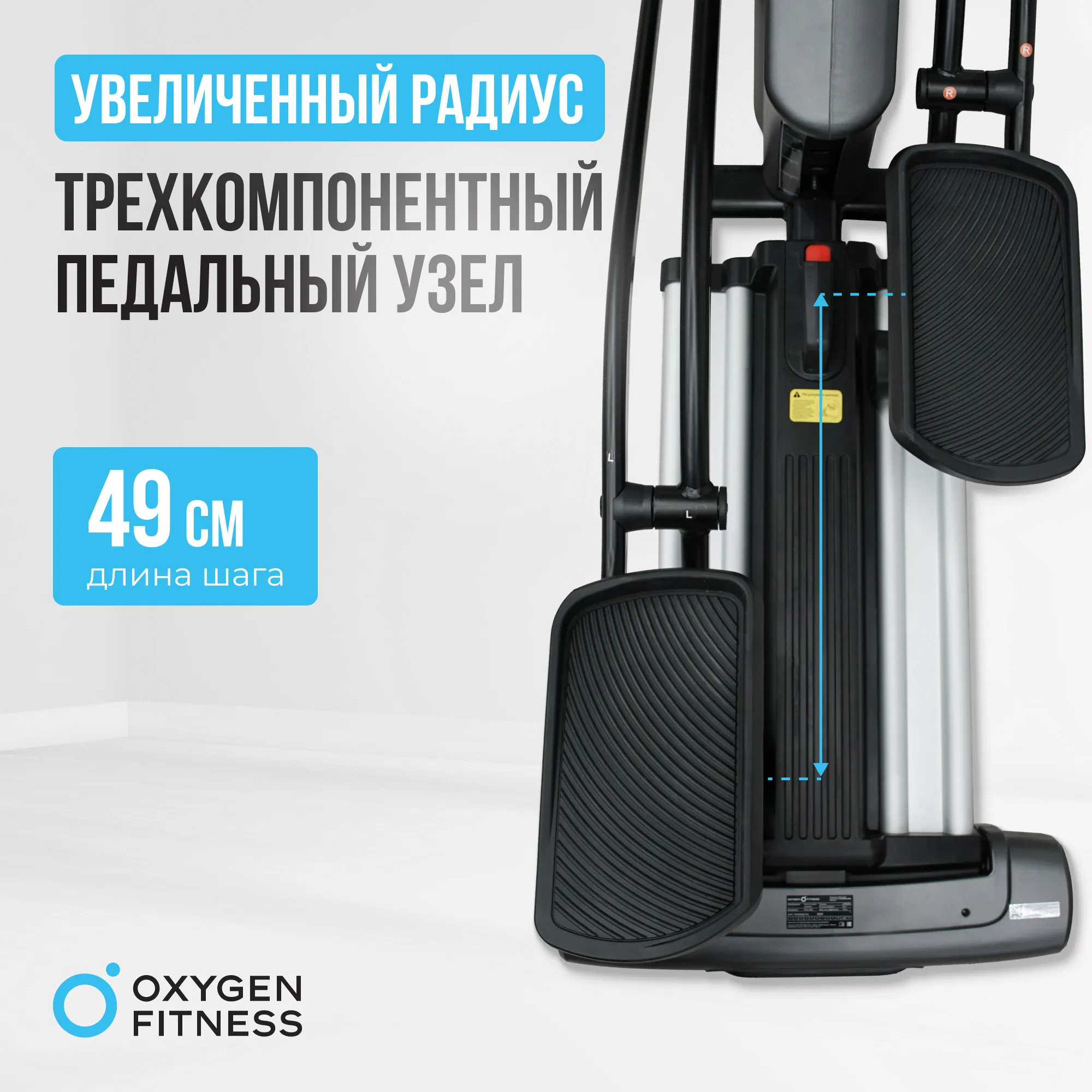 Эллиптический тренажер OXYGEN FITNESS E700 PRO — это надежный компаньон для ваших кардиотренировок. С весом 104 кг и инерционным весом маховика 24 кг, этот тренажер обеспечивает плавный и комфортный ход. Он прекрасно подходит для пользователей разного уровня подготовки и позволяет выполнять тренировки с максимальной эффективностью. С 32 уровнями нагрузки и 24 предустановленными программами, включая 4 пульсозависимые и 4 пользовательские, OXYGEN FITNESS E700 PRO позволяет каждому подобрать индивидуальный подход к тренировкам. Консоль с LCD дисплеем отображает всю необходимую информацию: время, скорость, дистанцию, калории, пульс и уровень нагрузки. Встроенный жироанализатор поможет отслеживать прогресс в достижении ваших целей. Эллиптический тренажер оснащен удобными изогнутыми подвижными поручнями с мягкой оплеткой, а также неподвижными поручнями для измерения пульса. Расстояние между педалями составляет 110 мм, а длина шага — 490 мм, что обеспечивает естественный и комфортный ход во время тренировки. Педали имеют антискользящее покрытие и увеличенный размер для максимального удобства. Эллиптический тренажер OXYGEN FITNESS E700 PRO — это идеальное решение для тех, кто хочет добиться максимальных результатов в кардионагрузках и поддерживать отличную физическую форму! Ключевые преимущества OXYGEN FITNESS E700 PRO: • электромагнитная система нагружения: 32 уровня нагрузки для индивидуальной настройки тренировки; • множество программ: 24 программы, включая пульсозависимые и пользовательские, чтобы разнообразить ваши занятия; • интеграция с приложениями: Bluetooth позволяет подключаться к мобильным приложениям Kinomap™ и Zwift™, улучшая качество тренировок; • комфортные условия: регулируемый угол наклона (6 уровней), транспортировочные ролики и компенсация неровностей пола для удобства использования; • информативная консоль: LCD дисплей с подсветкой для удобного отслеживания всех параметров тренировки.