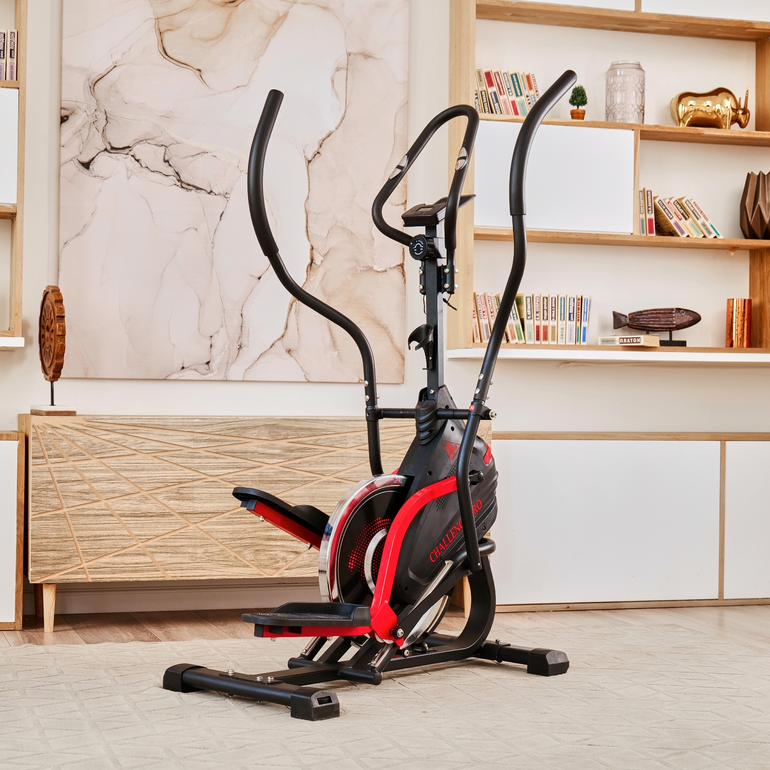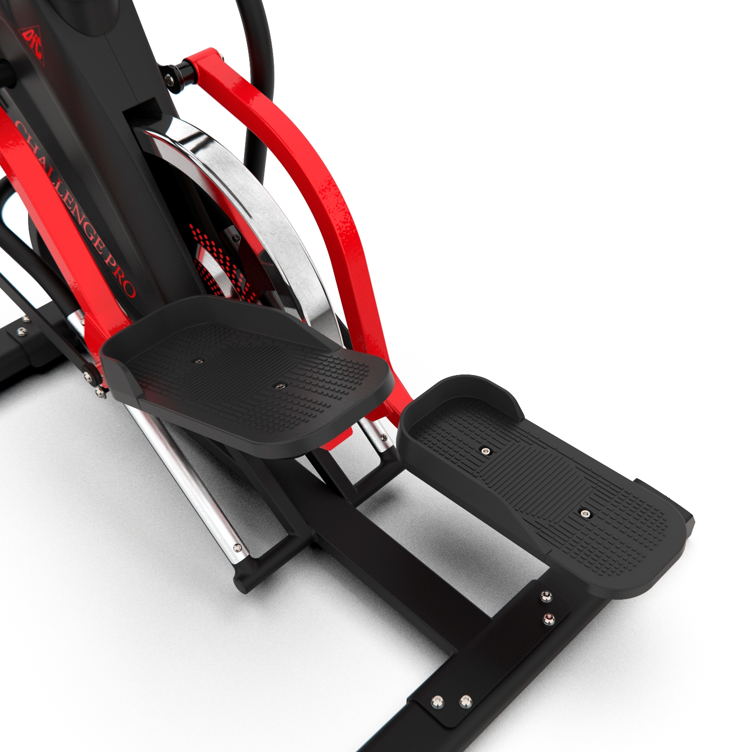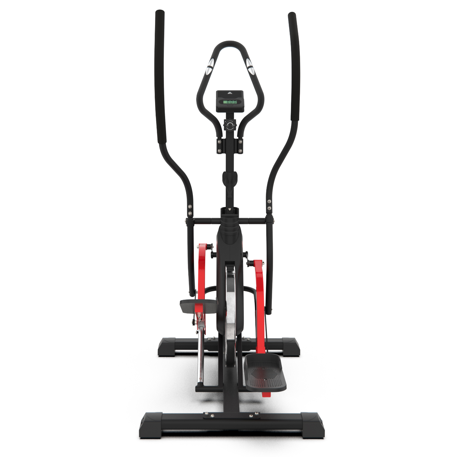 Представляем новую модель популярной серии эллиптического тренажера с функционалом степпера. Тренажер имитирует восхождение в гору и нагружает различные группы мышц. Длина шага укороченная под степпер (по горизонтали 18 см, по вертикале 23 см). Маховиком весом 7 кг (инерционный вес 10 кг). Механическая модель с ременным приводом и колодочной системой нагружения. Изменение нагрузки происходит с помощью механического регулятора на стойке, 8 положений регулировки. Большие педали с бортиком и нескользящей поверхностью. Размер педали 34х14,5 см. Удобные изогнутые поручни с мягкими накладками. Для удобства перемещения предусмотрены 2 транспортировочных колеса в передней части тренажера. В заднюю опору встроены 2 компенсатора высоты. Модель оснащена компактной консолью и отображает следующие параметры тренировки: время, скорость, калории и расстояние (относительная величина расстояния восхождения в гору) Консоль выполнена в форме держателя под планшет или смартфон. Удобно прослушать трек или посмотреть любимое видео во время тренировки.