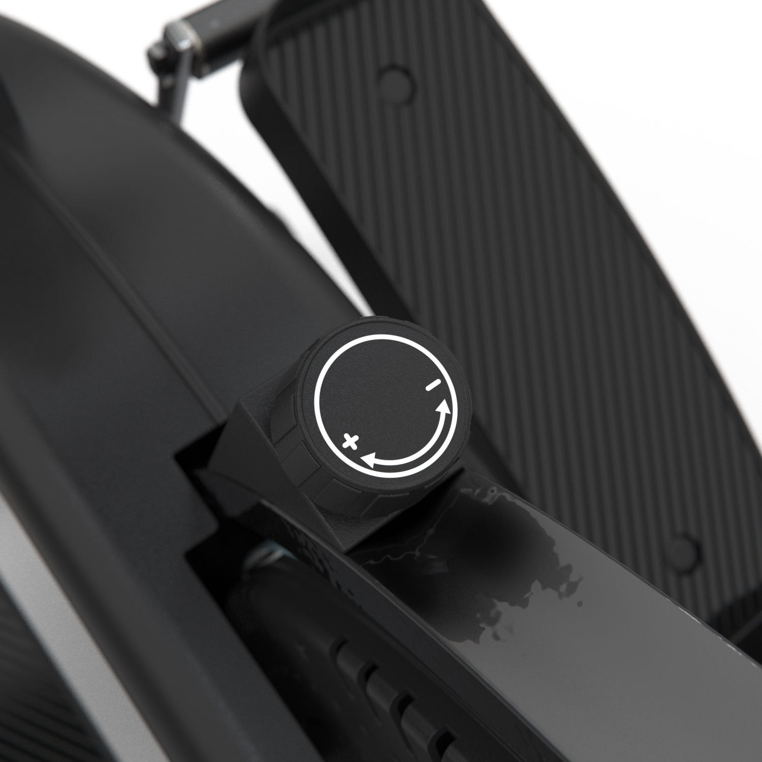 Тренажер имеет ременную систему нагружения с ручной регулировкой с помощью рукоятки на корпусе тренажера - чем сильнее затянут ремень, тем тяжелее крутить педали.