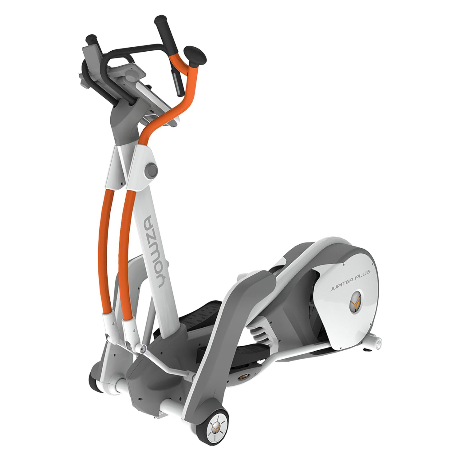 Jupiter Plus оснащён длиной шага 18–24 дюйма, регулируемым наклоном от 0 до 35% и рулевым колесом с функцией Multi-Grip. Это позволяет разнообразить тренировки и задействовать различные участки верхней части тела. Педали Ergo Fit обеспечивают комфорт и разгрузку суставов во время интенсивных тренировок.