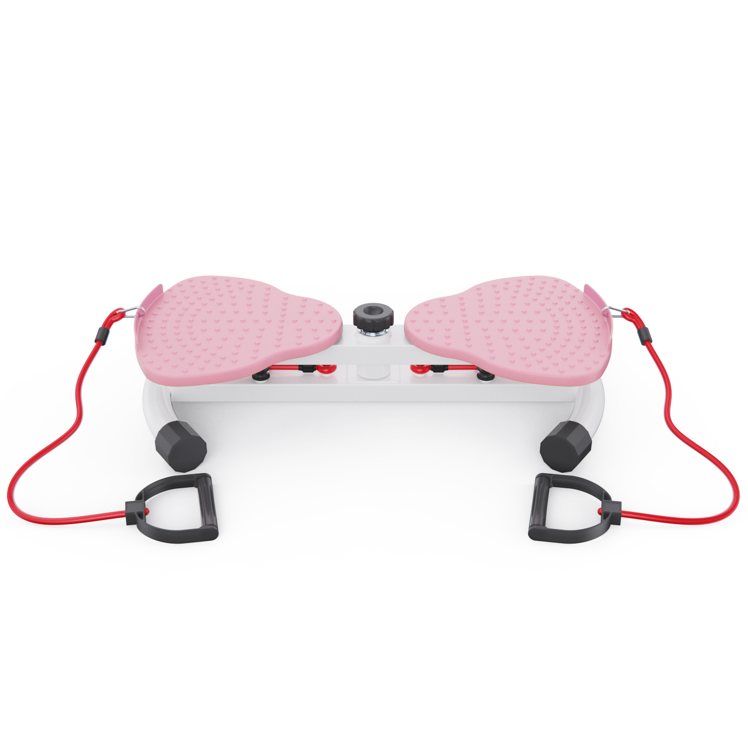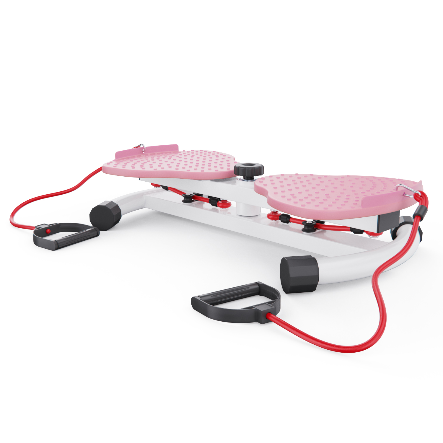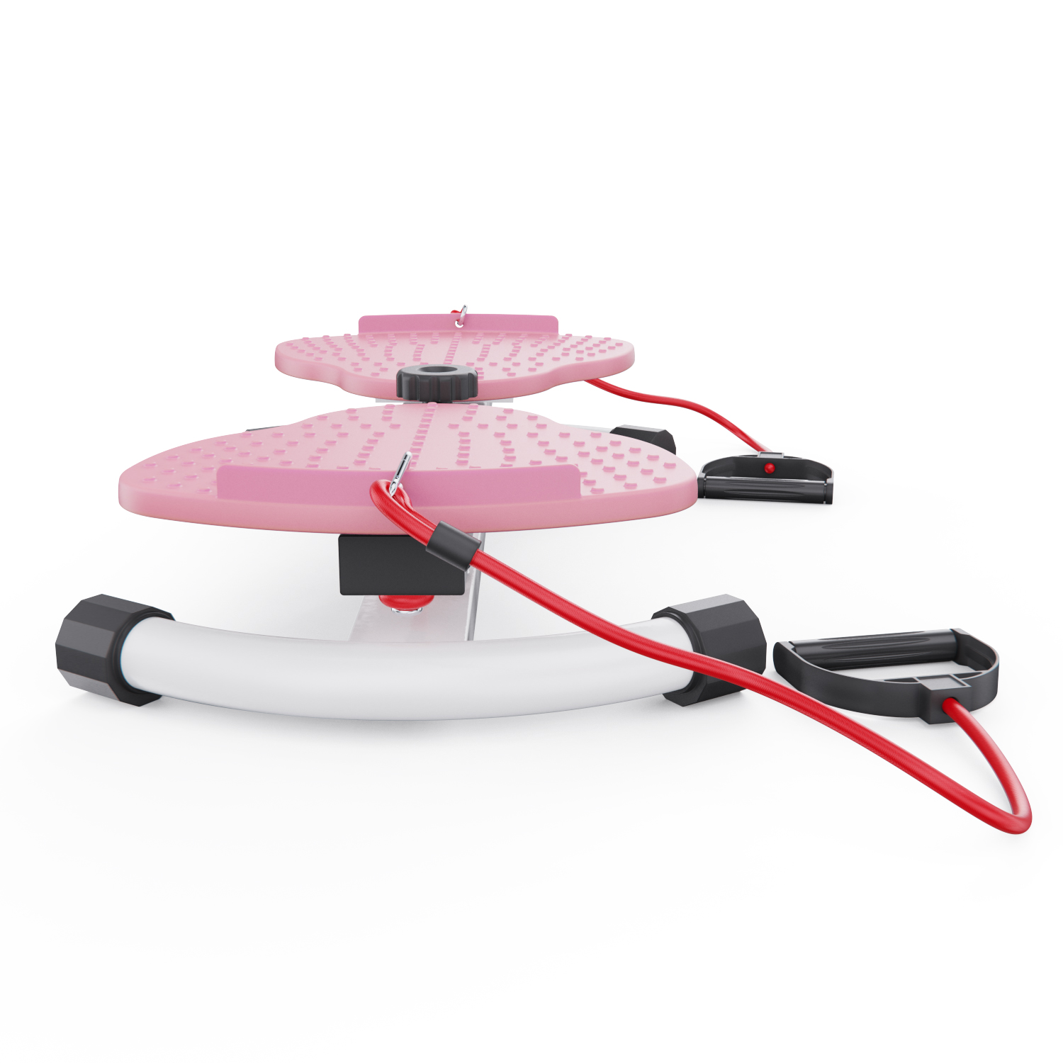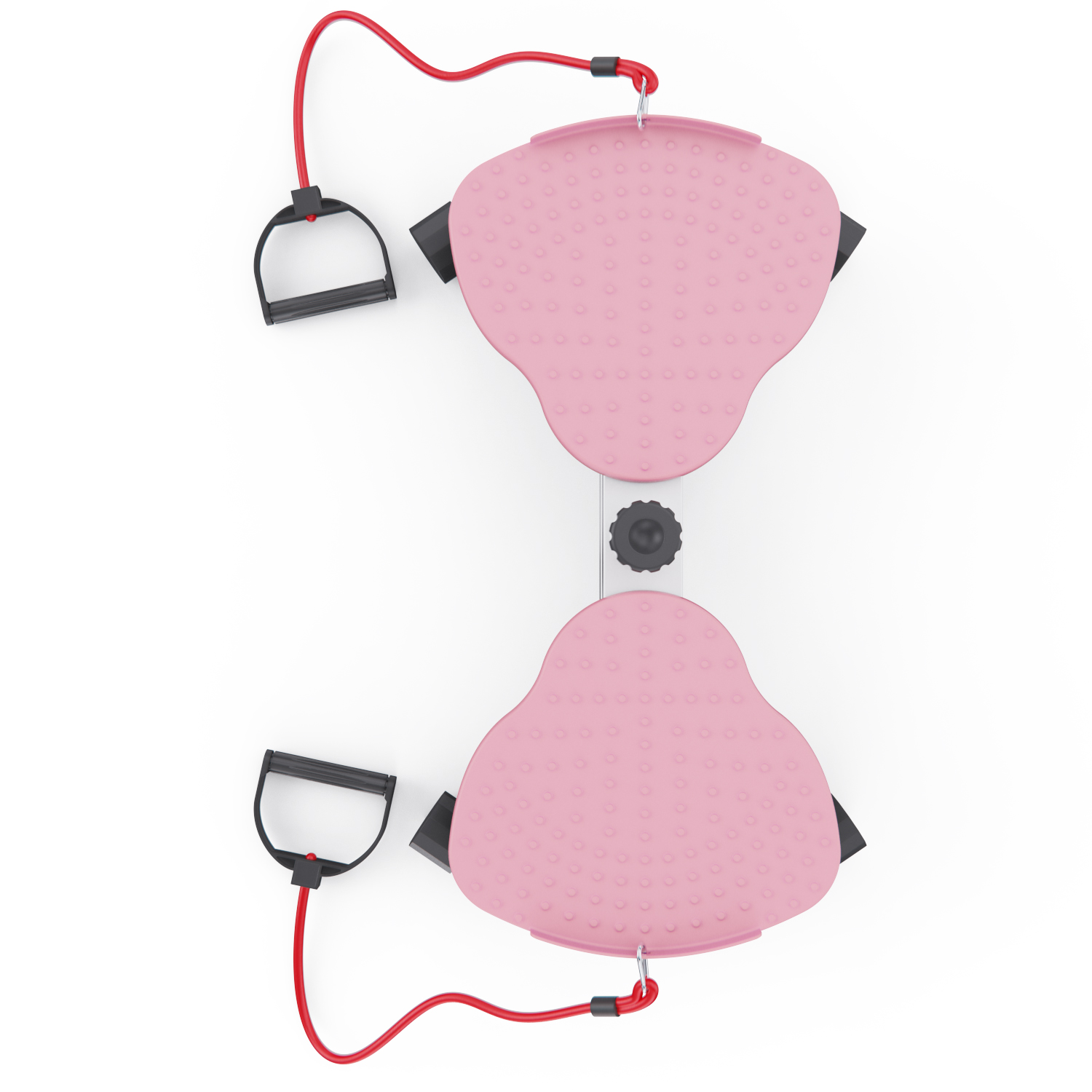 Платформа выполнена из качественных материалов (PP, PVC, сталь) и выдерживает вес до 120 кг. Тренажер оснащён 2 уровнями сопротивления, которые легко настраиваются с помощью удобной ручки. Это позволяет подобрать оптимальную нагрузку под уровень подготовки — от начинающего до продвинутого пользователя.