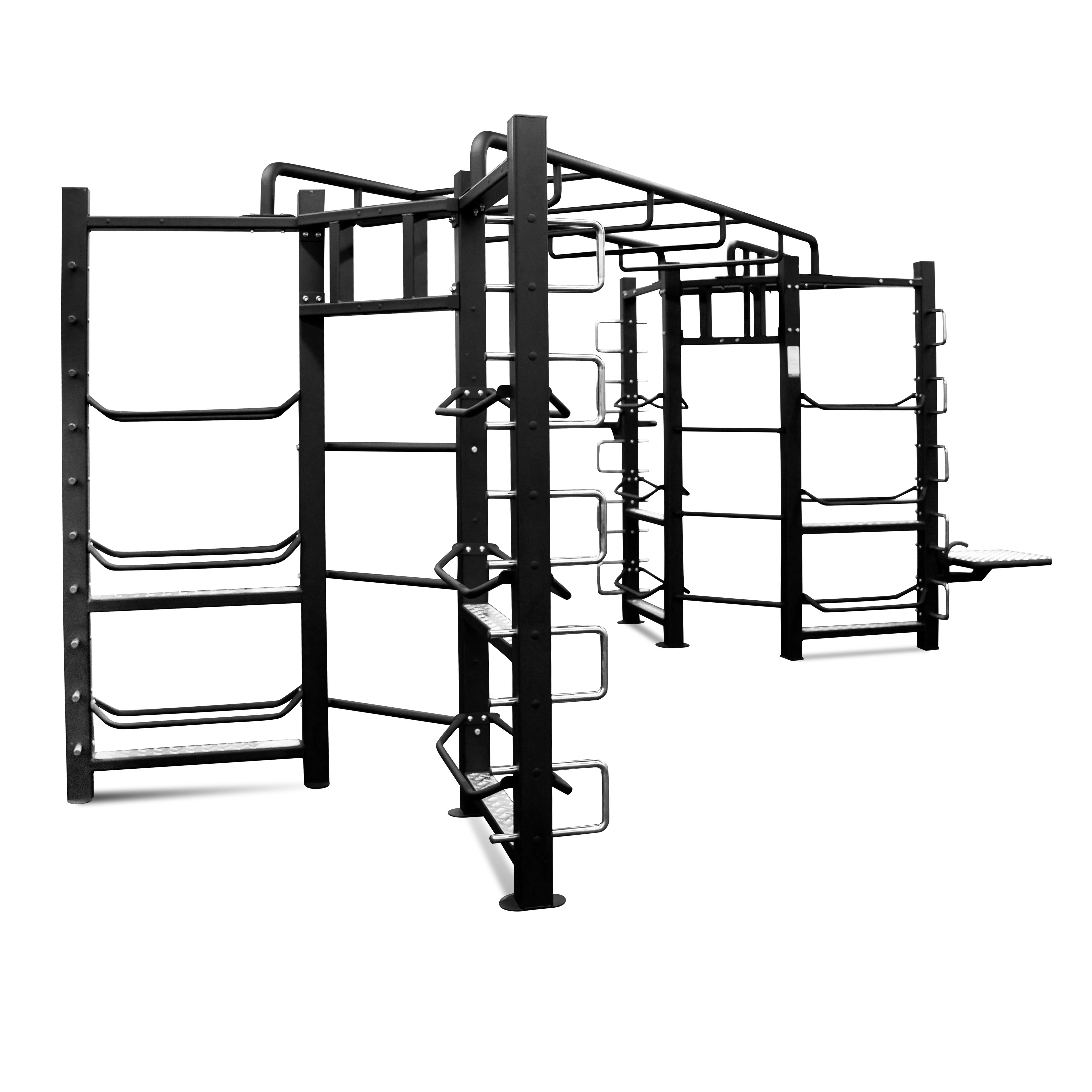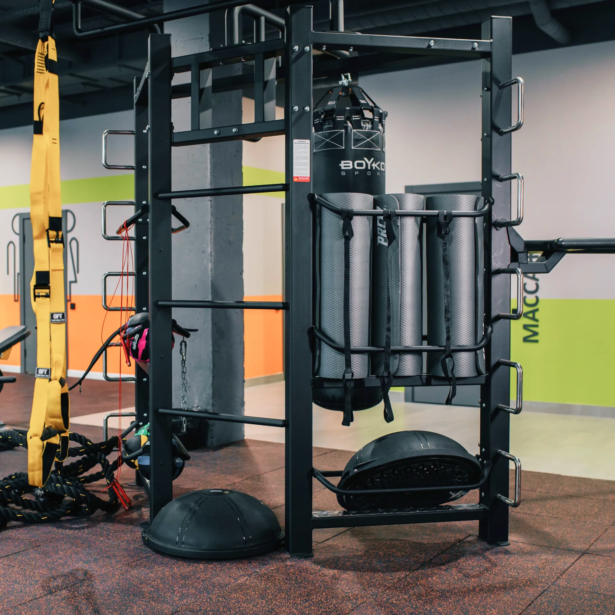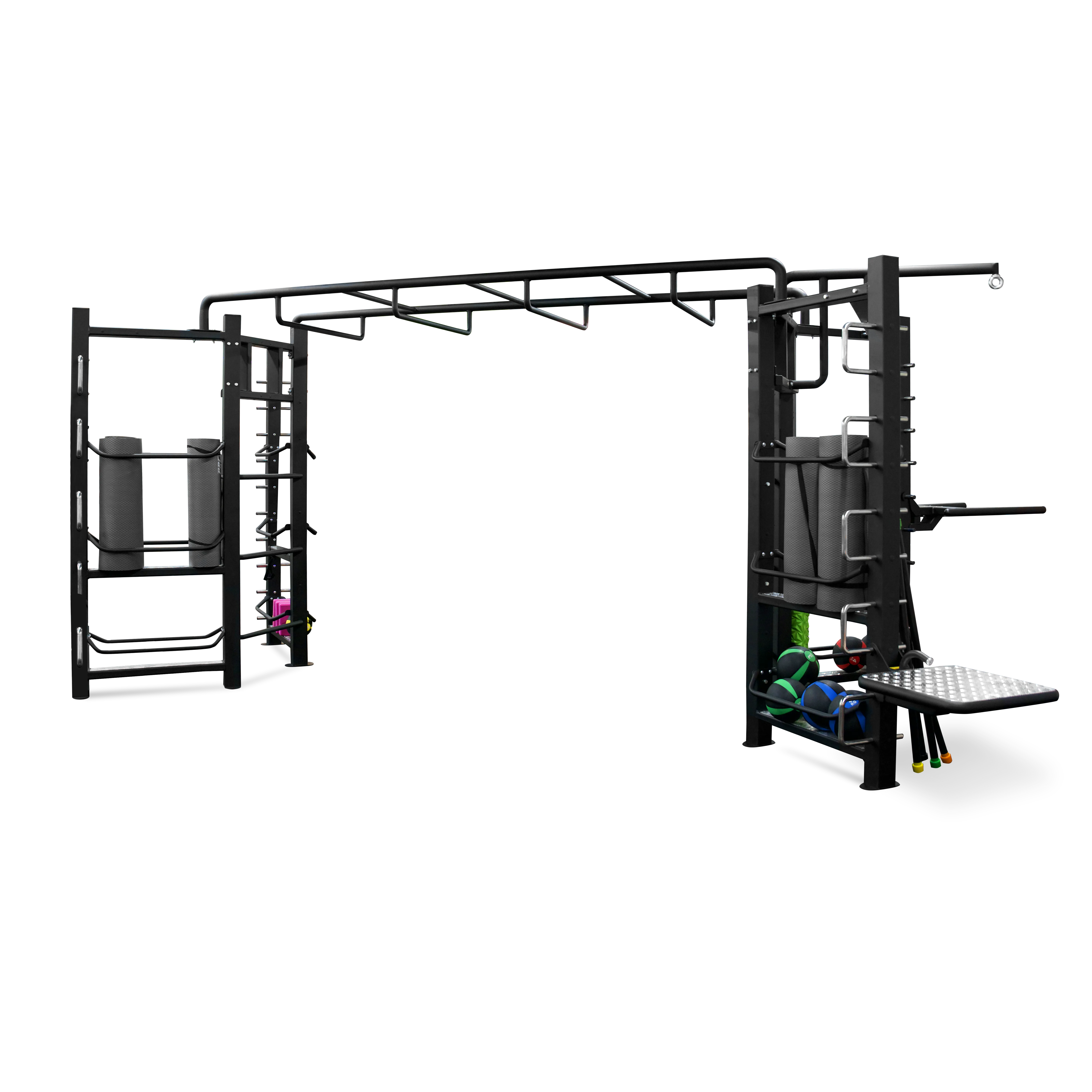 BRONZE GYM FL-01 - это уникальное решение для построения максимально насыщенных функциональных тренировок на ограниченной площади. Благодаря двум тренировочным зонам и большому количеству аксессуаров можно создать оригинальные динамичные программы по групповому и персональному тренингу. Комплекс из двух модулей в форме буквы "I", состоит из: зоны растяжки и зоны бокса (боксерский мешок в комплект не входит), соединенных между собой посредством «рукохода», включающий плио платформу, опору для отжиманий и шарнирный крепеж для грифа. Дополнительно здесь также присутствует шведская стенка. Ширина профиля составляет 100 на 100 мм. Требуемая площадь для комплекса и зона комфортной тренировки: 20 м.кв. Позволяет тренироваться группе из 4-х человек. Модули включают подставки для хранения: медболов, гирь, эспандеров, скакалок, ремней (аксессуары в комплект не входят). Самое главное преимущество заключается в том, что вся эта красота производится на территории России, что позволит заказать оборудование и получить его в кратчайшие сроки.