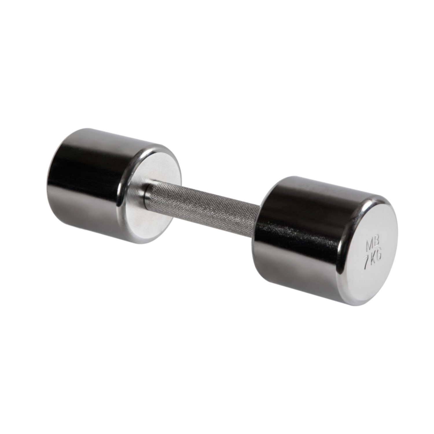 Гантель выполнена с нанесением комплексного гальванического покрытия из никеля и хрома. Материал: хромированная сталь Вес: 7,0 кг Длина хвата: 12 см Диаметр хвата: 2,5 см Диаметр веса: 8,9 см Производитель: MB Barbell